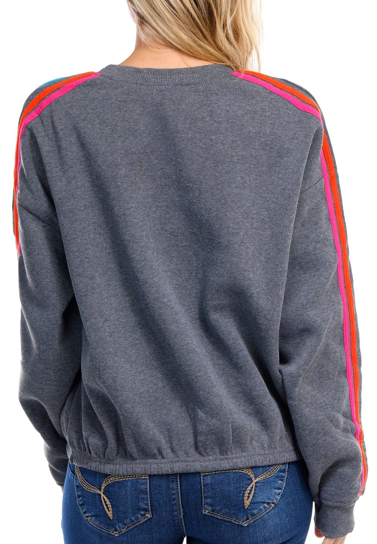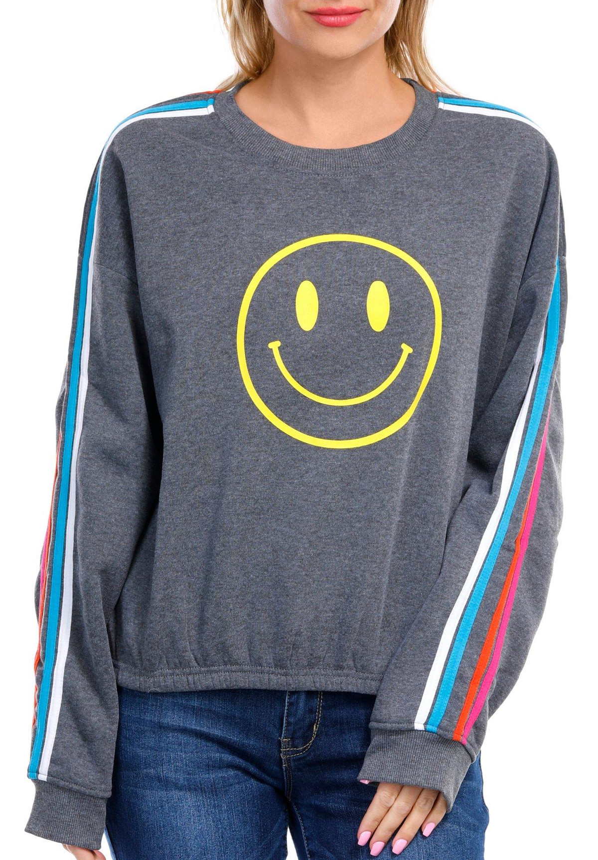 Add some fun to your wardrobe with our Juniors Cropped Long Sleeve Sweatshirt. Featuring a cheerful smiley face detail and striped sleeves, this stylish top brings playful vibes to any outfit. Perfect for pairing with high-waisted jeans or skirts, it offers both comfort and a trendy, laid-back look for casual days out.