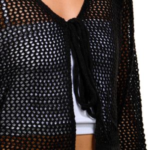 Wrap yourself in cozy elegance with this Long Sleeve Cardigan. Crafted from open knit fabric, it offers breathability and comfort. The tie front design adds a charming touch, making it easy to adjust for the perfect fit. Ideal for layering over any outfit, this cardigan combines style and functionality effortlessly. Perfect for cool evenings or casual days out, it’s a versatile addition to your wardrobe.