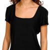 Enhance your wardrobe with our Juniors Short Sleeve Solid Ruched Top, crafted from a blend of polyester and spandex for a comfortable fit. This chic top features a stylish solid ribbed exterior, short sleeves, a square neckline, and elegant side ruched detail. Perfect for pairing with jeans or skirts, its versatile design makes it ideal for casual outings or special occasions.