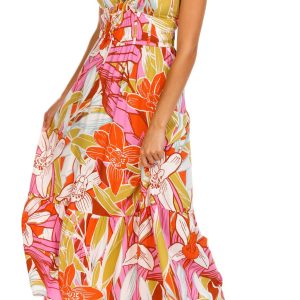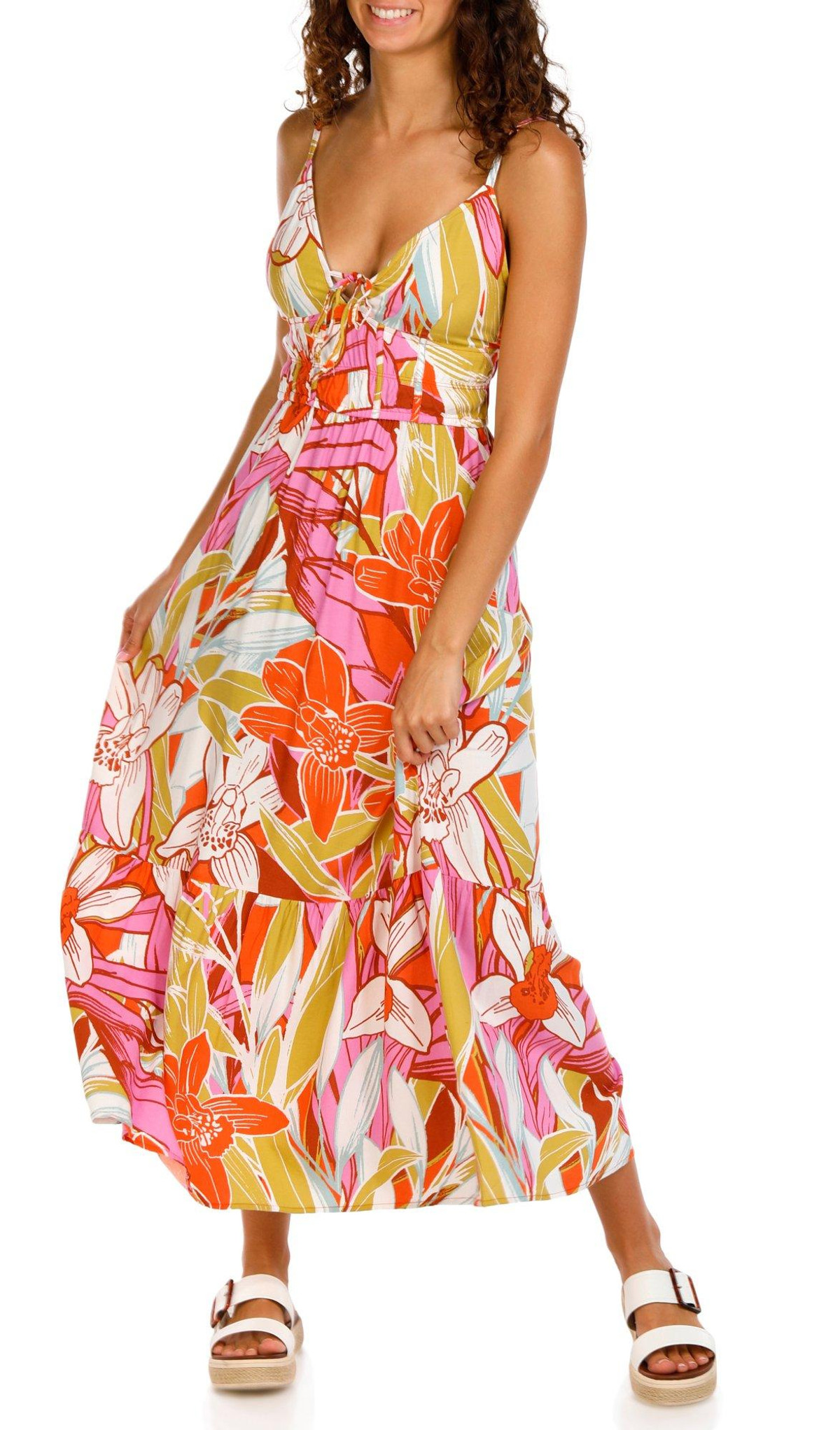 Make a statement in this Sleeveless Maxi Dress, designed with a bold print pattern and flowing tiered silhouette. Molded cups provide support and shape, offering both style and comfort for beach days, brunch dates, or sunset strolls.
