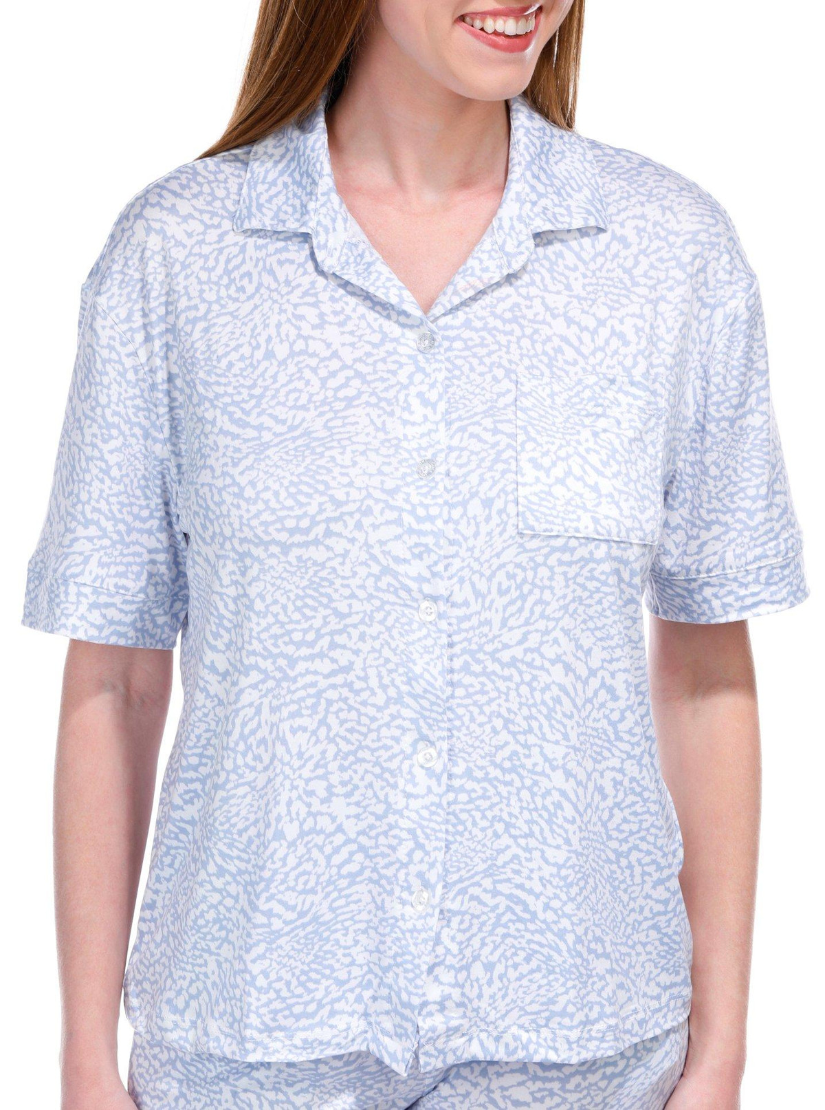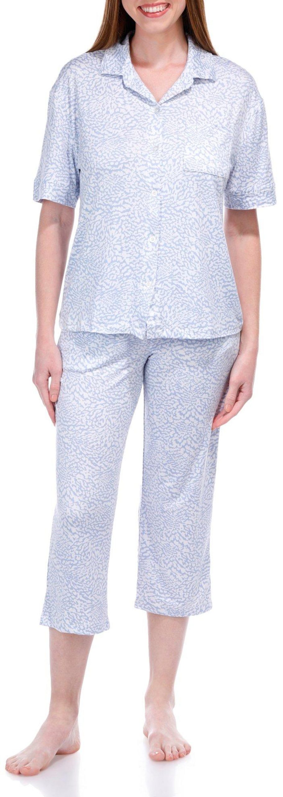 Indulge in cozy elegance with our Women’s 2 Pc Pajama Pants Set. Made from a soft blend of polyester and spandex, this set features a stylish print. The short sleeve button-down top with a collared neckline pairs perfectly with the matching pants, offering both comfort and sophistication for your nighttime routine.