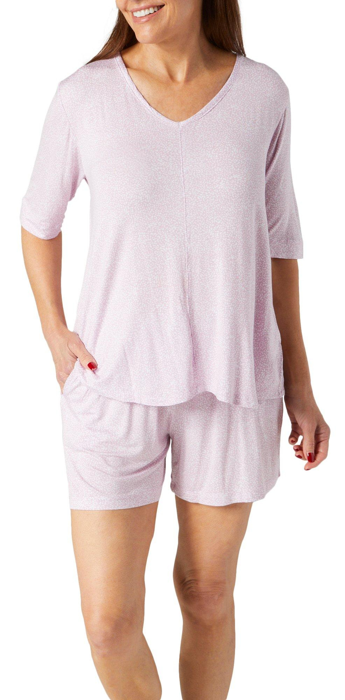 Stay cozy in our 2 piece print Sleep Shorts Set! Made from a comfortable blend of polyester and spandex, this set features a stylish print design on a short sleeve top and shorts.