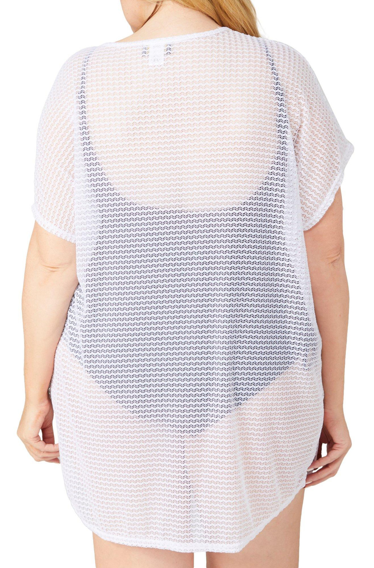 Stay effortlessly chic with this Short Sleeve Mesh Tunic Coverup. Featuring a stylish split neck, it offers a modern and breezy look perfect for any beach or poolside outing. The lightweight mesh fabric ensures comfort and breathability, making it ideal for layering over your favorite swimwear. Fabrication is 95% nylon, 5% spandex.