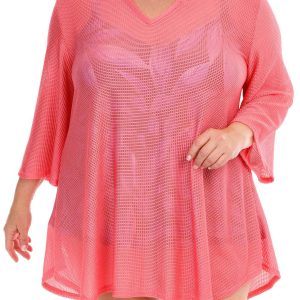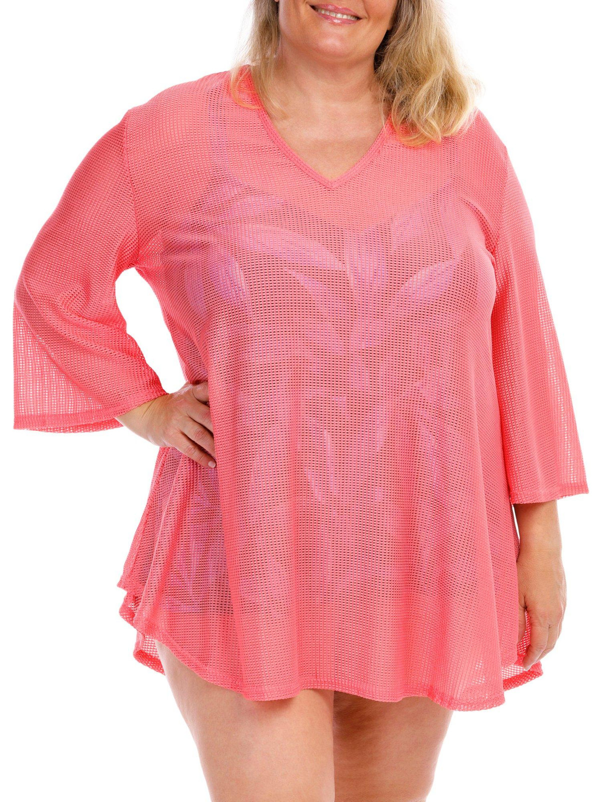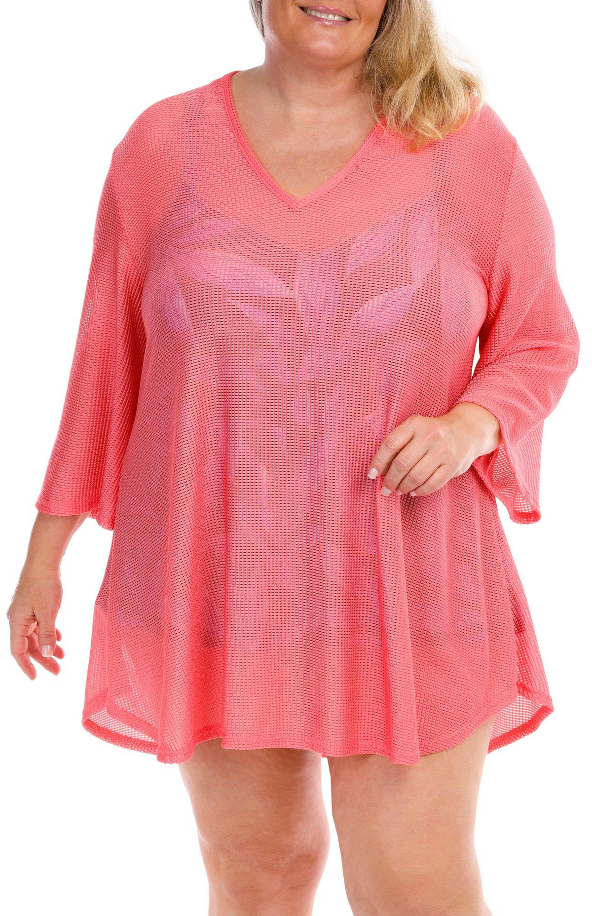 Step into effortless style with our 3/4 Sleeve Mesh Coverup Dress. This elegant coverup features a solid color and a flattering V-neck, perfect for adding a touch of sophistication to your beachwear. The lightweight mesh fabric ensures breathability and comfort, making it ideal for warm, sunny days. Fabrication is 95% nylon, 5% spandex.