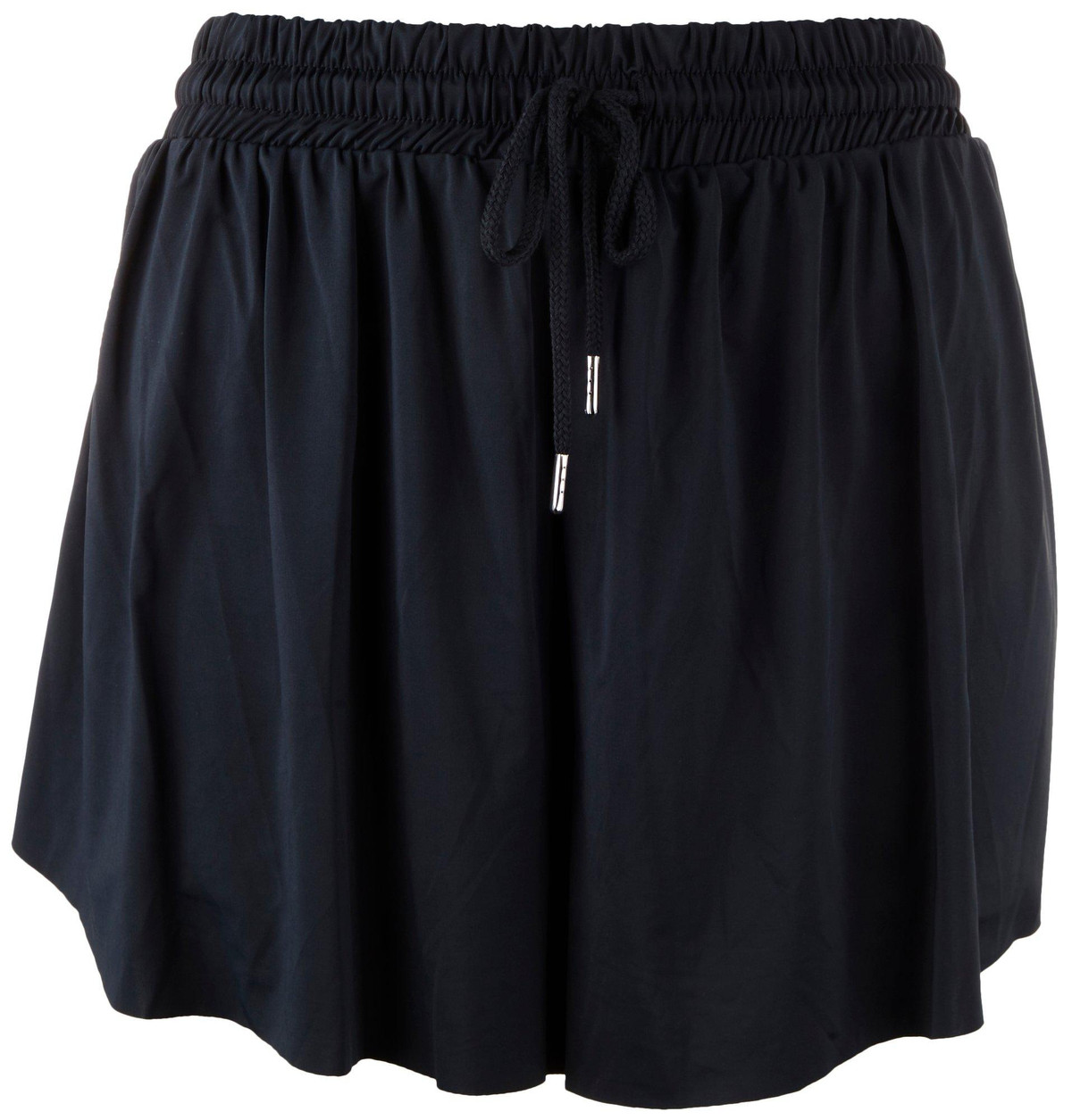 This brand provides an effortlessly stylish fit. These shorts feature a stylish solid color design on soft knit fabric, moisture wicking technology, 4-way stretch, an elastic waistband with adjustable tie, and comfortable fit. The inseam measures approximately 2in. Out seam measures approximately 14in. Fabrication is 93% polyester and 7% spandex.