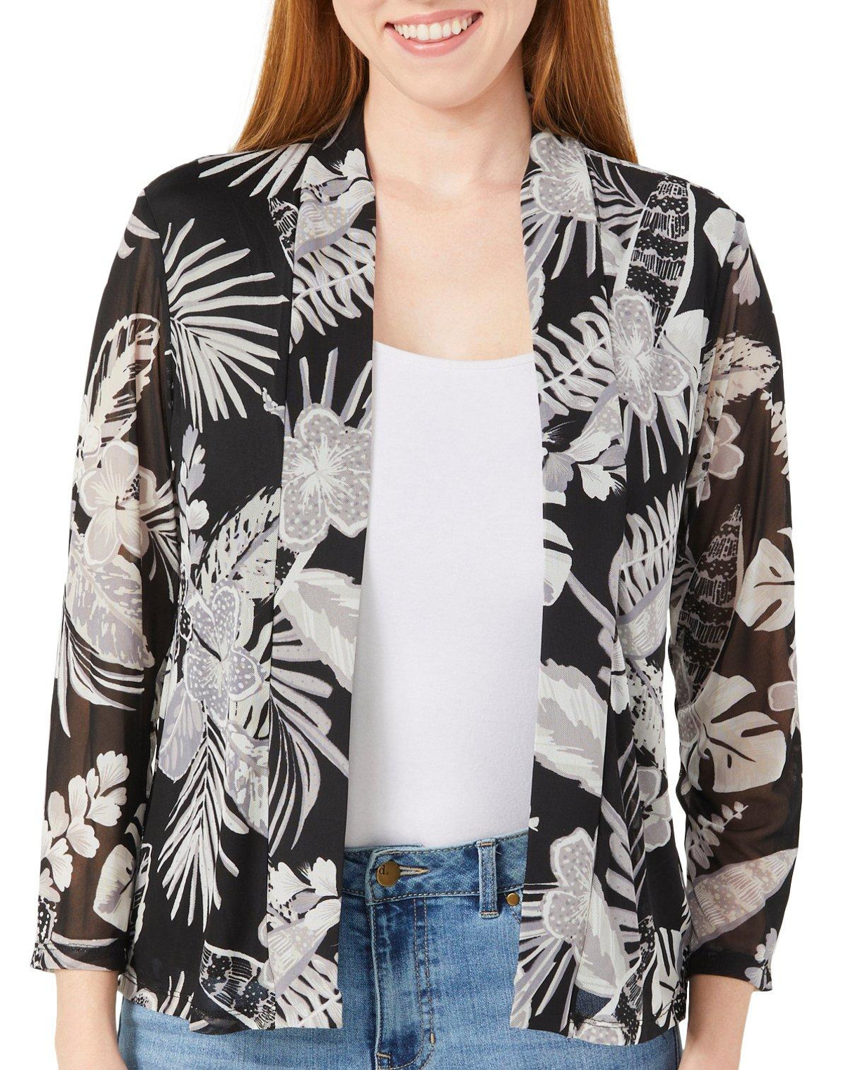 Add a touch of elegance to any outfit with this 3/4 Sleeve Floral Mesh Cardigan. Crafted from a soft polyester-spandex blend, it features a breezy open front and delicate floral mesh design. Perfect for layering, it offers lightweight comfort and effortless style.