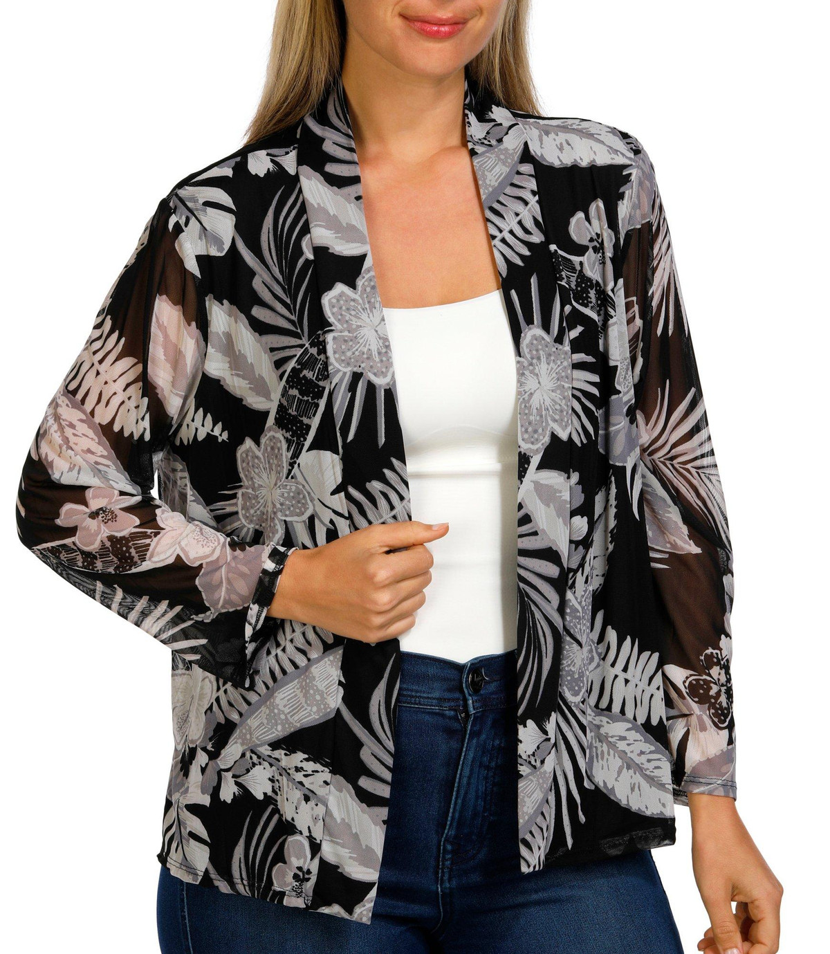 Add a touch of elegance to any outfit with our Women’s 3/4 Sleeve Floral Mesh Cardigan. Crafted from a soft polyester-spandex blend, it features a breezy open front and delicate floral mesh design. Perfect for layering, it offers lightweight comfort and effortless style.