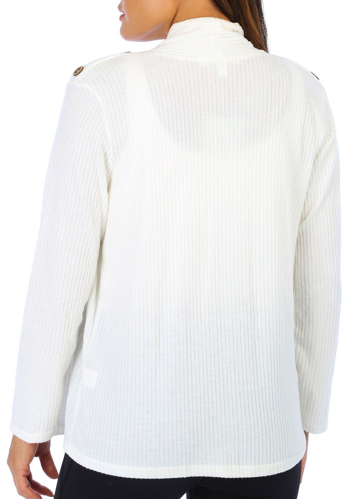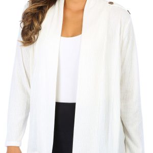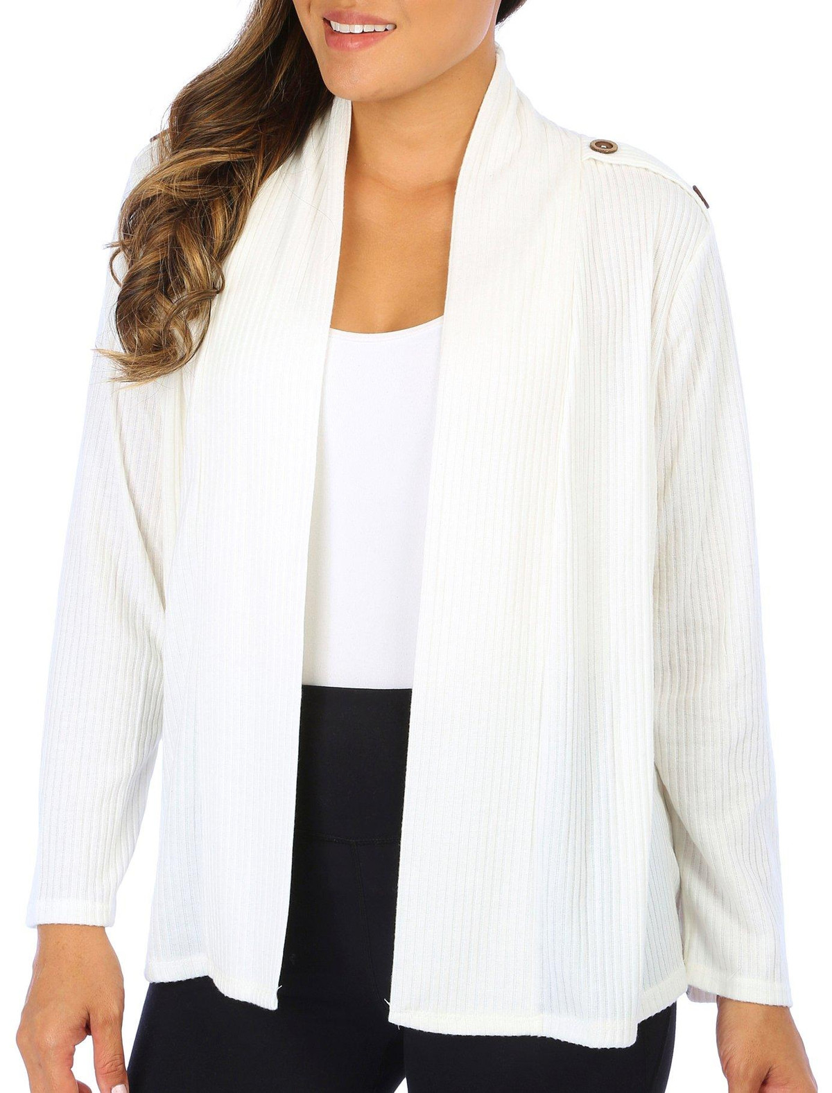 This long sleeve cardigan features a solid color design on soft lightweight knit fabric, and open relaxed styling. The top length measures approximately 25 in. Fabrication 60% polyester, 27% rayon 5% spandex.