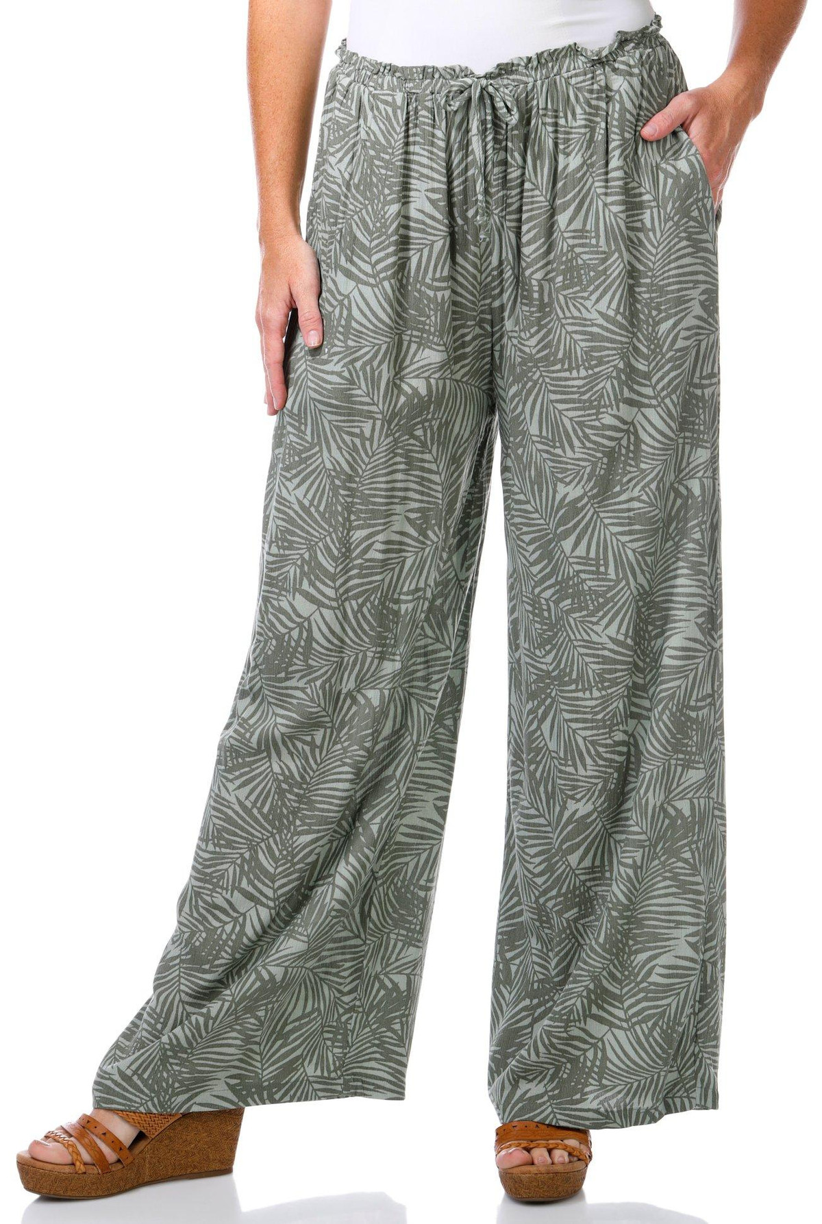 Kaktus Women's Wide Leg Green Palm Pull On Pants
