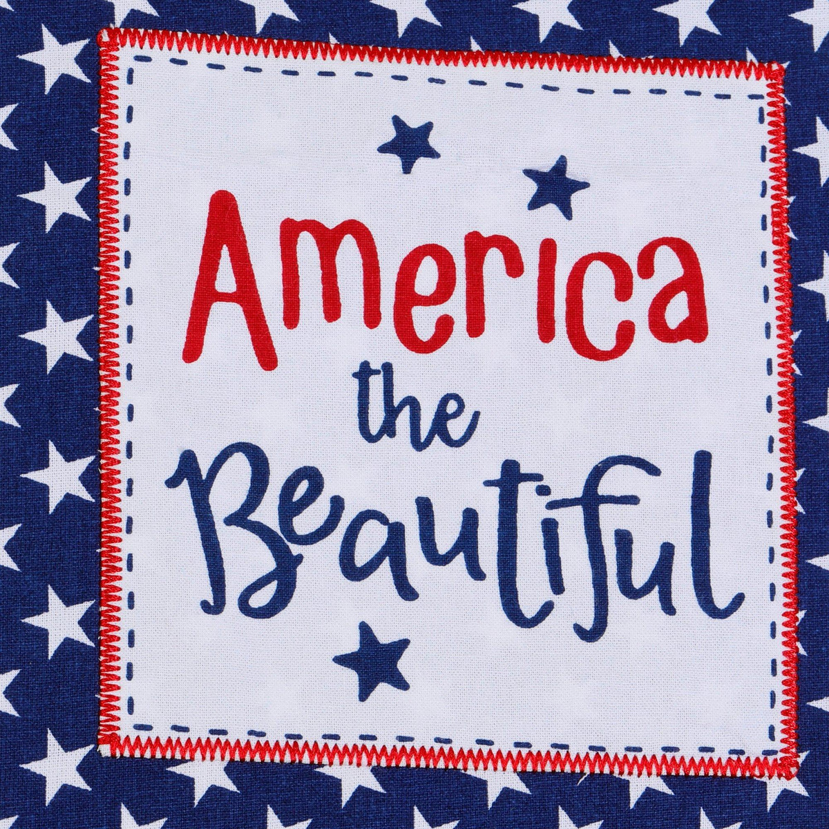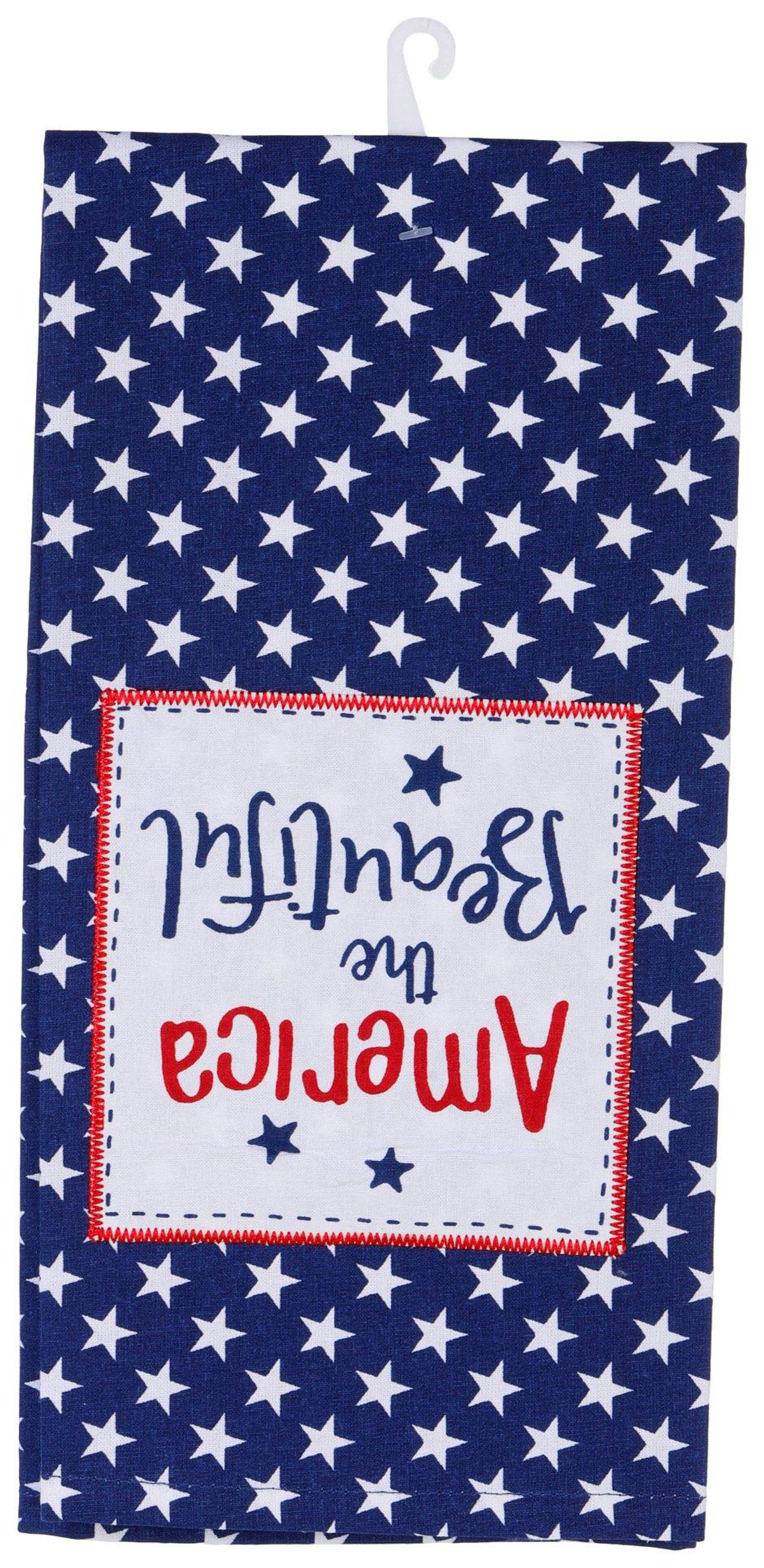 Bring timeless charm to your kitchen with the blue America the Beautiful tea towel, made from 100% cotton for softness and durability. It features a classic print perfect for patriotic holidays or everyday Americana style. Ideal for drying dishes, lining baskets or adding a decorative touch to your space. Fabrication is 100% cotton. Measures approximately 16 in x 26 in.