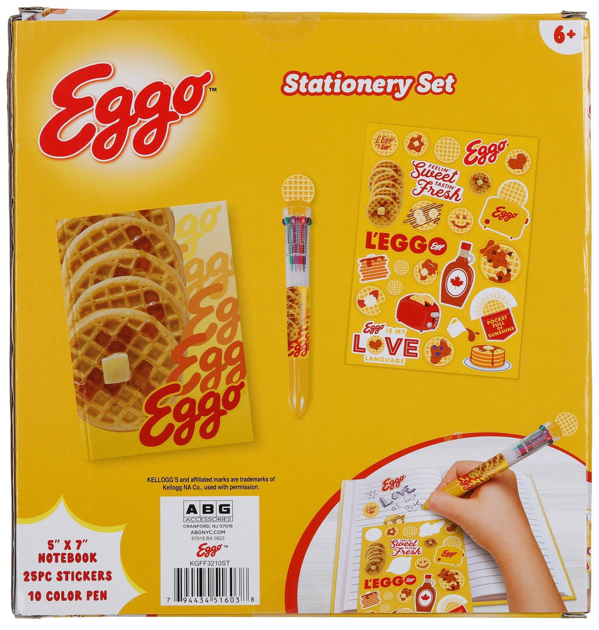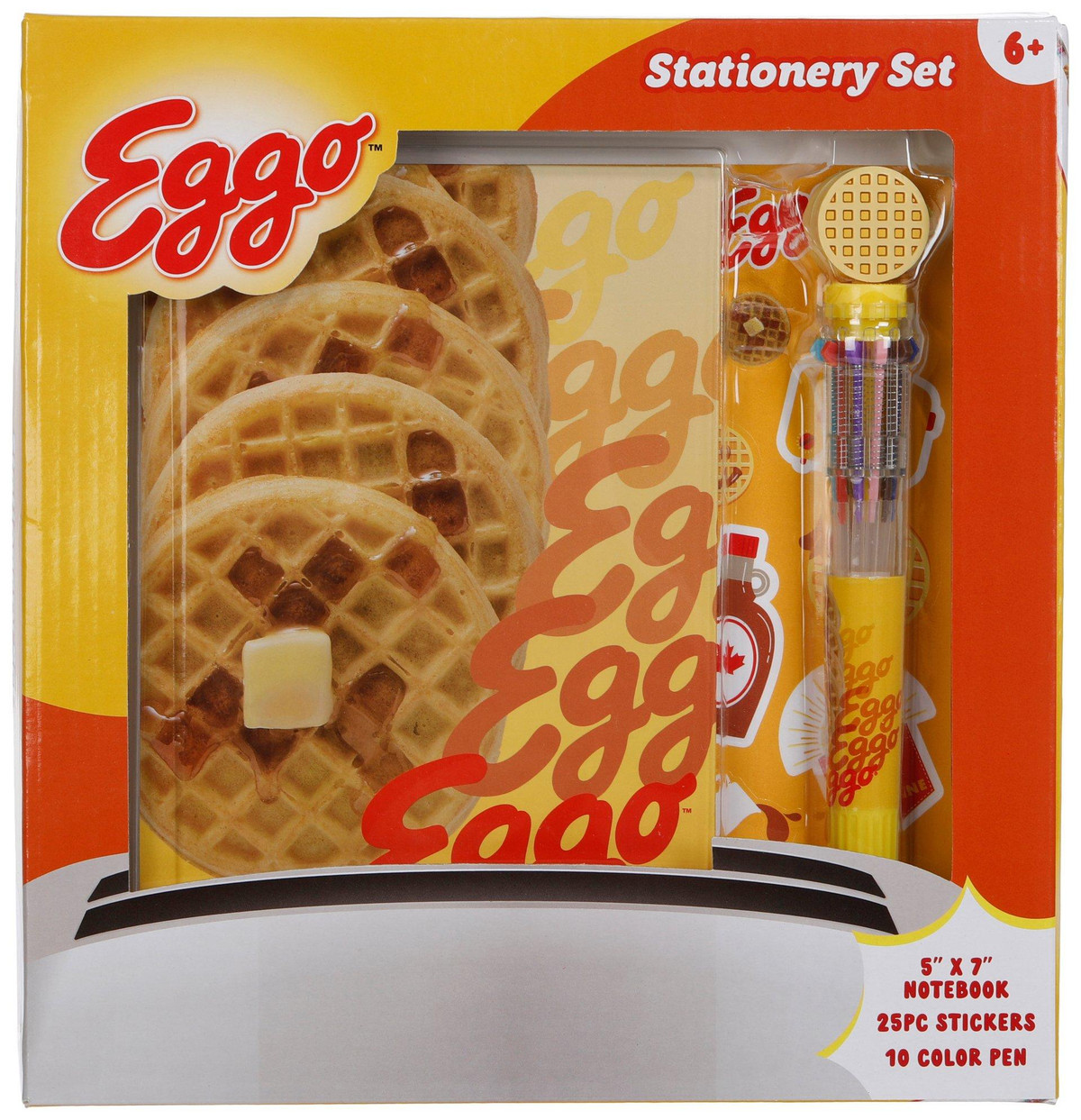 Add a playful touch to your desk with the Kelloggs Eggo Stationery Set, featuring a 5×7 notebook, 25 fun stickers and a 10-color pen. Perfect for jotting notes, journaling or gifting, this set brings nostalgic charm and creativity to school, work or home. Great for Eggo fans and stationery lovers alike. For ages 6+.