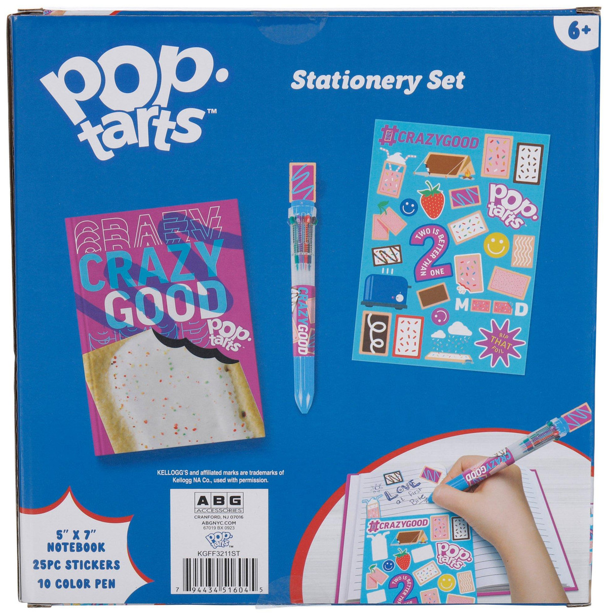 Bring color and fun to your desk with the Kelloggs Pop-Tarts Licensed Stationery Set, featuring a 5×7 notebook, 25 playful stickers and a 10-color pen. Perfect for notes, doodles or creative planning, this set adds a sprinkle of sweetness to school, office or home. A great gift for Pop-Tarts fans and stationery enthusiasts. For ages 6+.