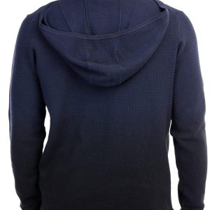 Stay comfortable and warm without sacrificing effortless style thanks to this knit long sleeve hoodie. It features an ombre-style color design, soft cotton knit fabric, and a hooded neckline with single button closure.