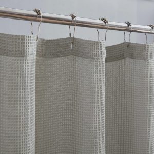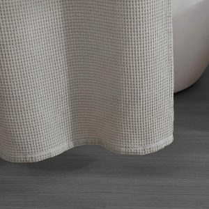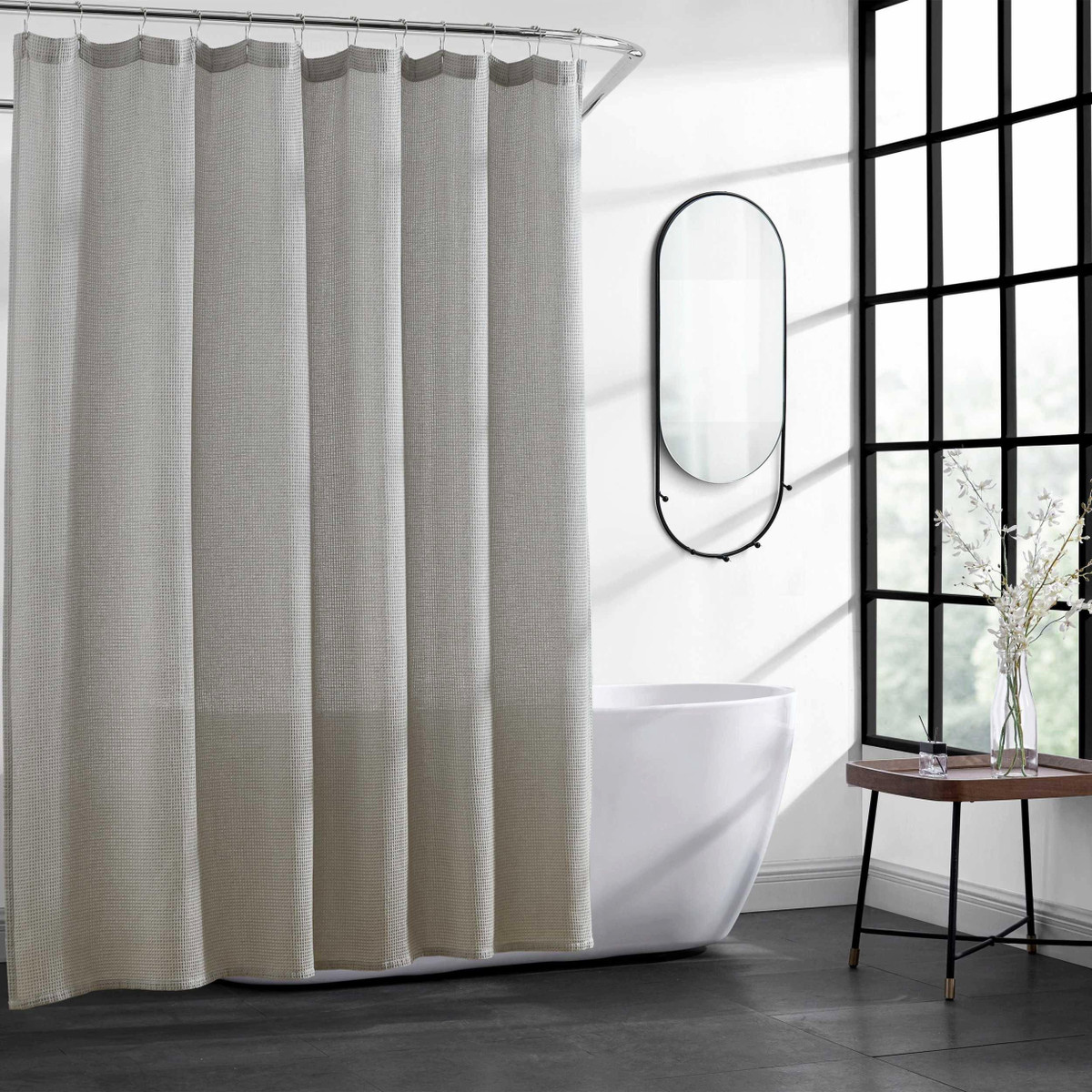 The Kenneth Cole Waffle Shower Curtain is crafted using a rich cotton blend. Designed with the perfect drape in mind, these curtains are lightweight yet thick enough to offer privacy. Made with 12-button holes to hang securely. One 70 in. x72 in. shower curtain included. Machine washable for easy care.