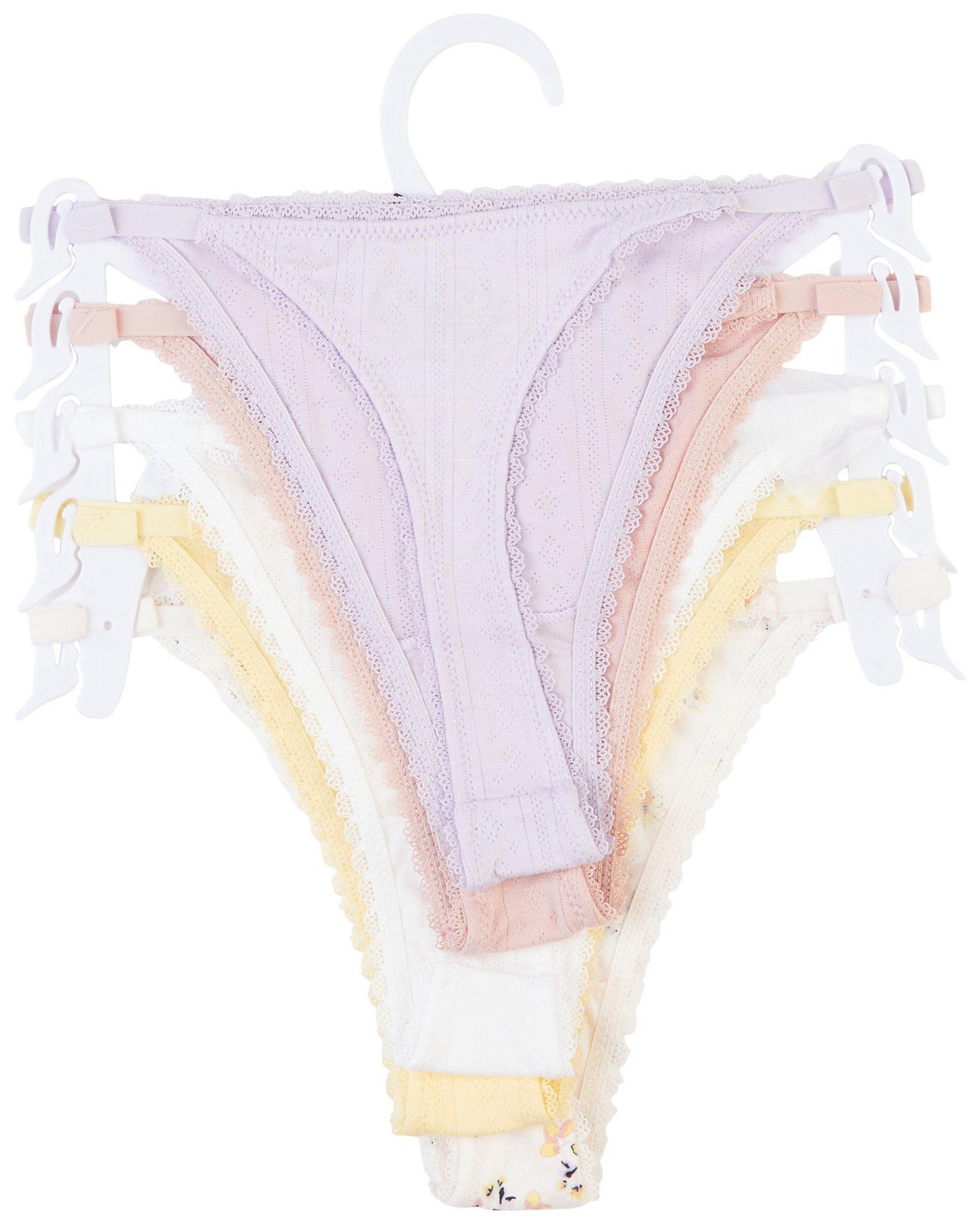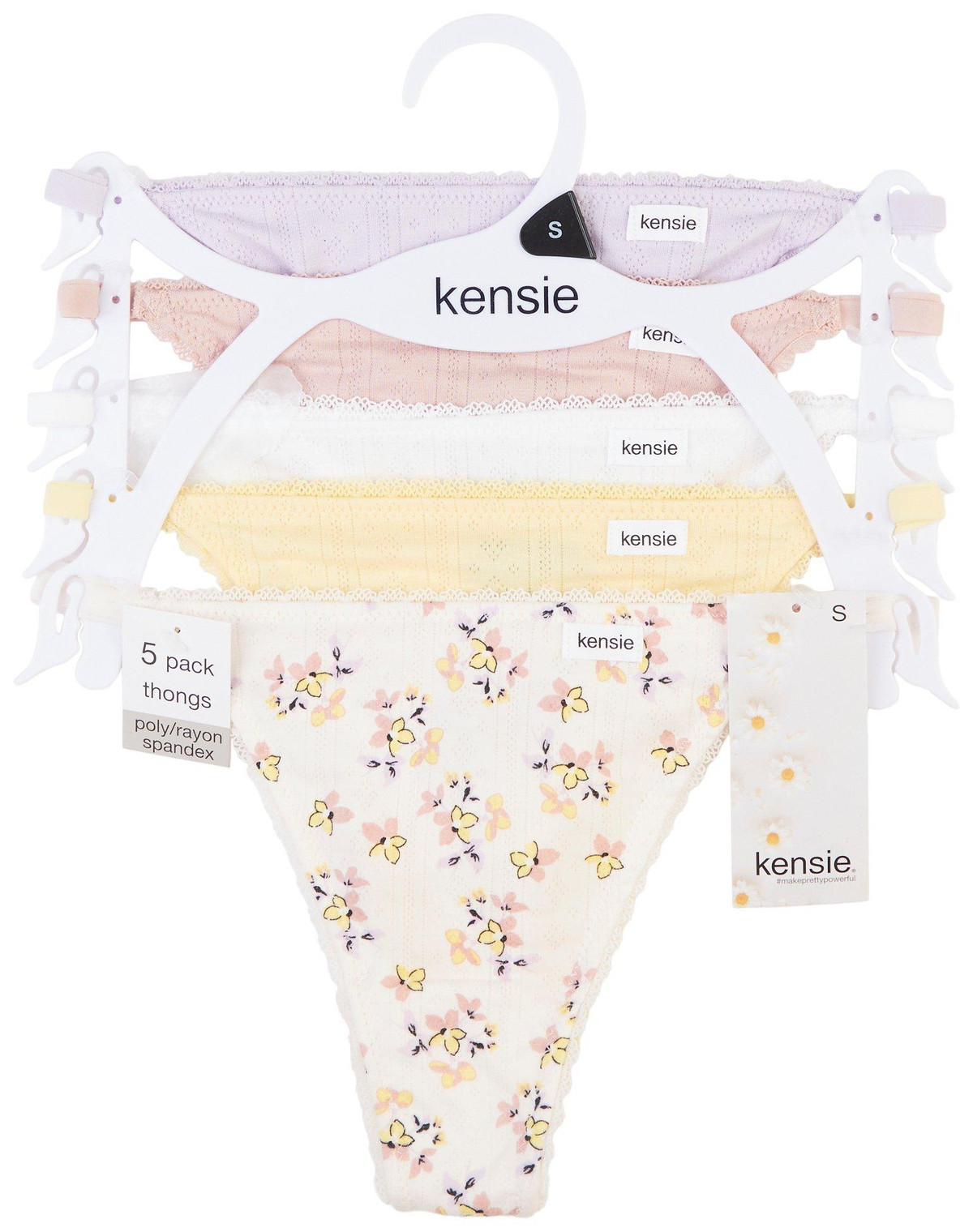 Feel fresh and feminine with this Kensie 5-pack of cotton/spandex thongs, featuring soft pastel tones and delicate floral prints. Designed for minimal lines and maximum comfort, theyre perfect for everyday wear under any outfit.