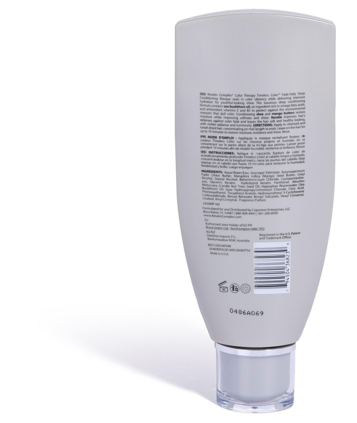 The Color Therapy Timeless Color Fade-Defy Deep Conditioning Masque is a luxurious hair masque that seals in colors vibrancy while delivering intensive hydration and youthful-looking shine. Keratin protein conditions the hair while reinforcing its natural protective barrier against color loss.