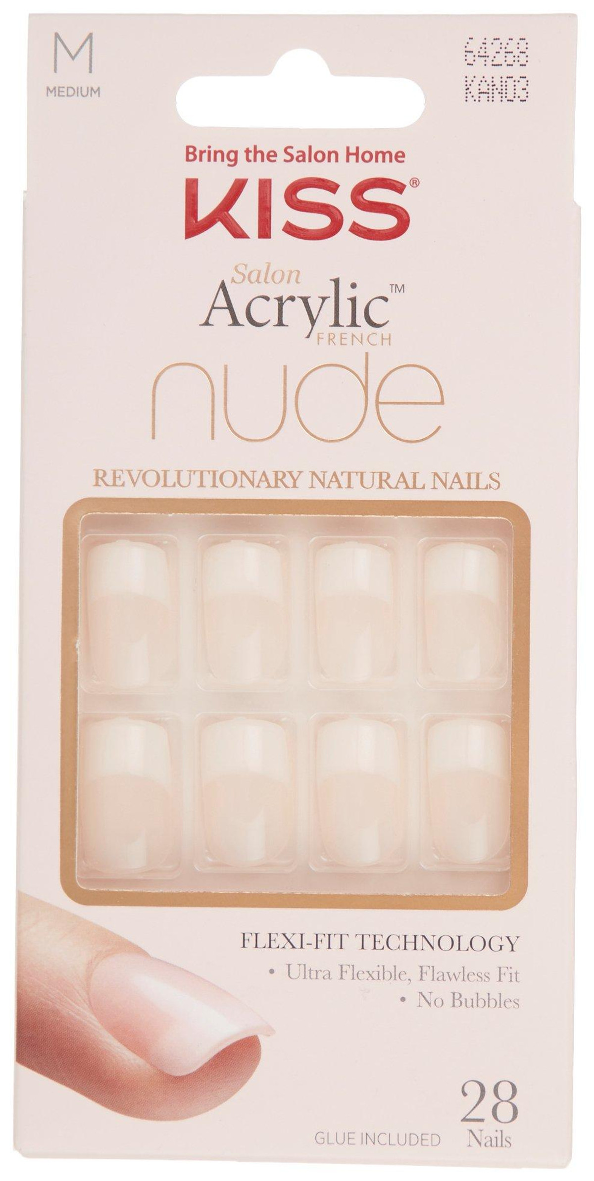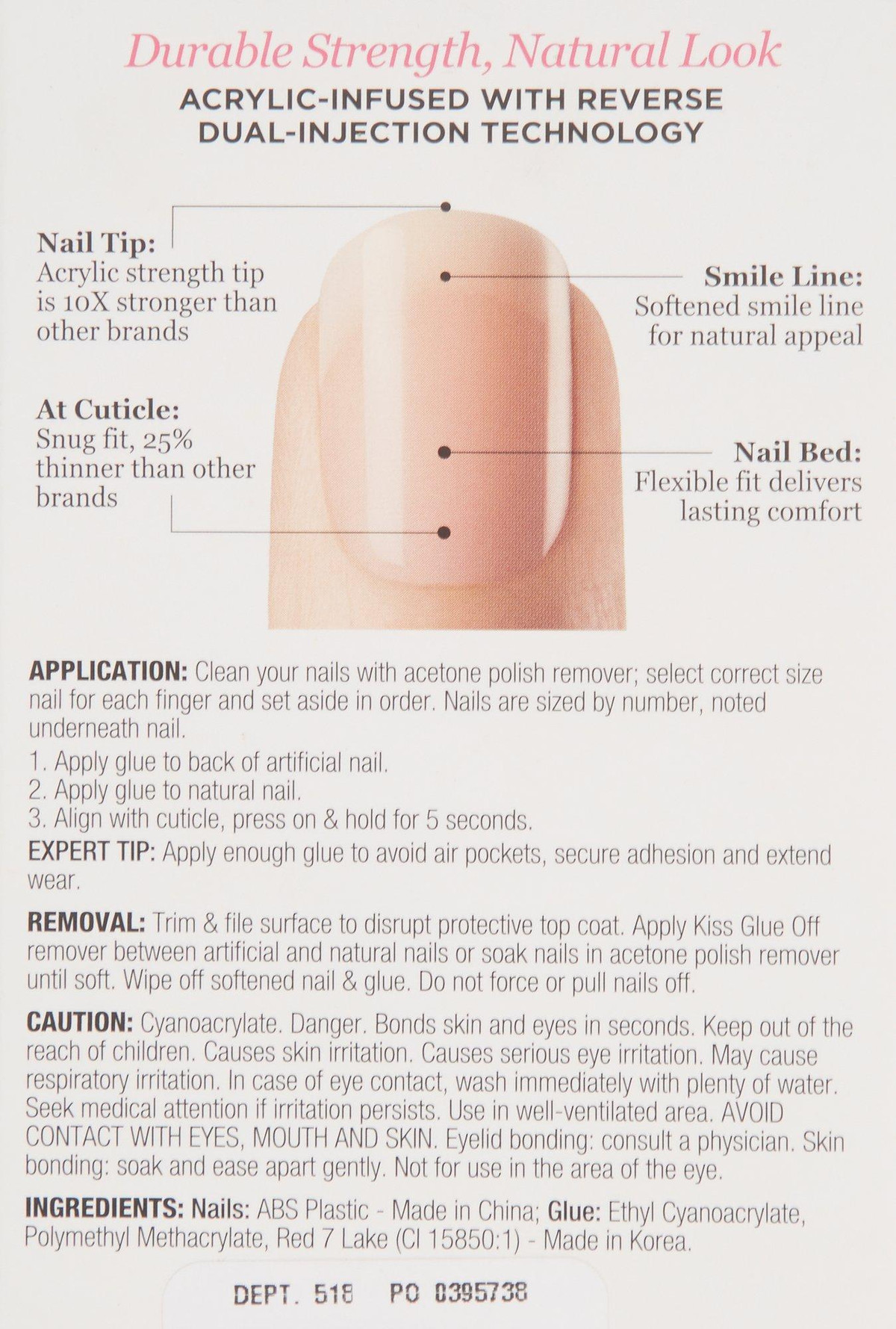 Includes a set of 28 nails, gel glue, miniature file, and manicure stick. Includes a nude French nail style & rounded shape. 6 months expiration from first use.
