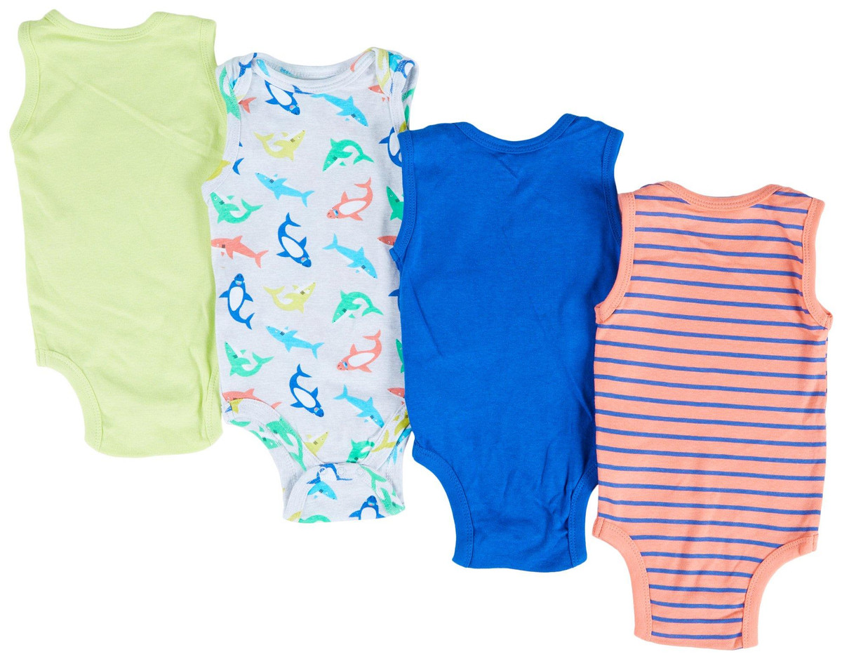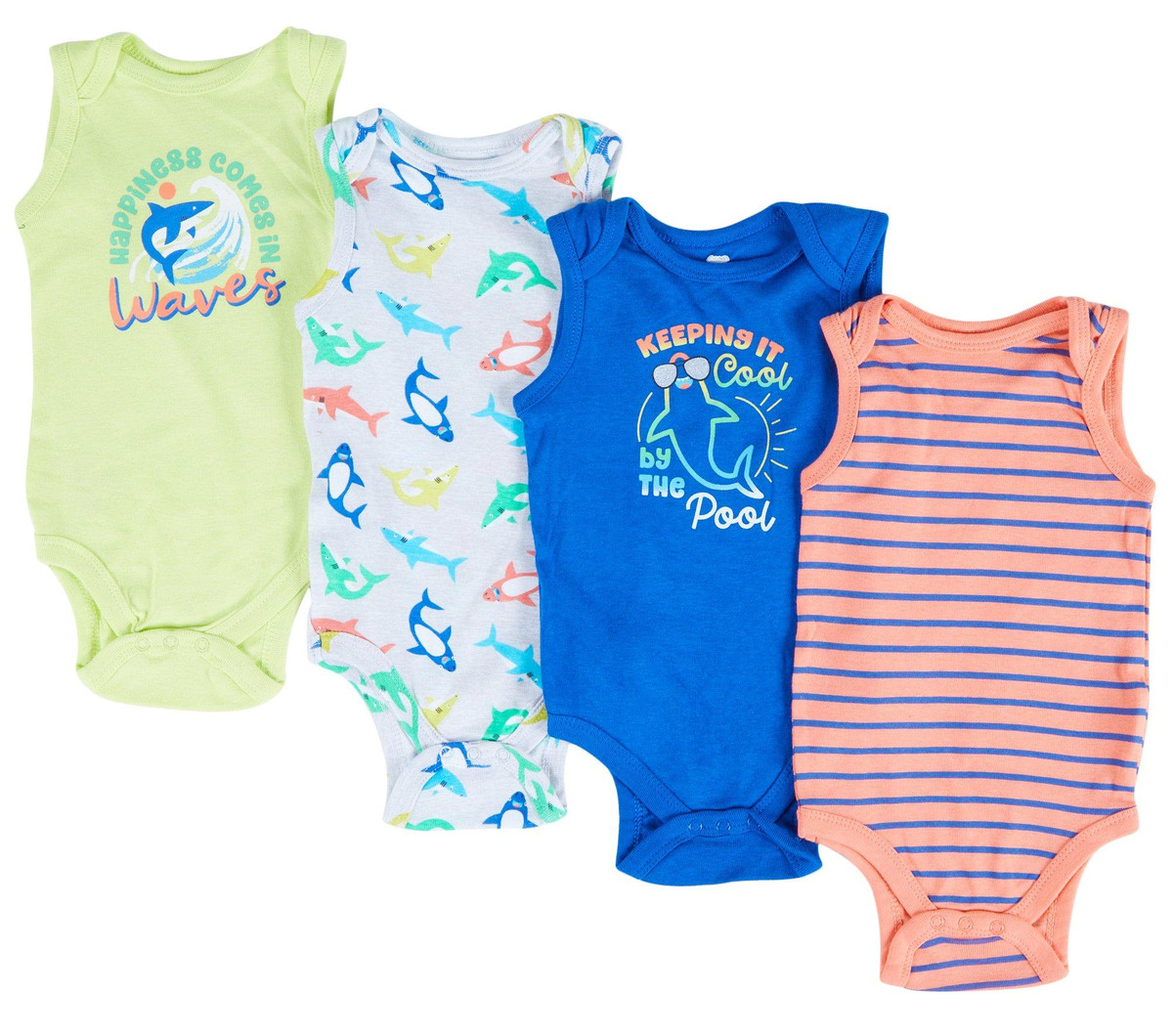 Keep your little one cool and comfy with this 4-pack of sleeveless bodysuits, featuring fun shark and ocean-themed designs. Made from soft cotton with easy snap closures, each bodysuit brings playful vibesperfect for warm days or easy layering.