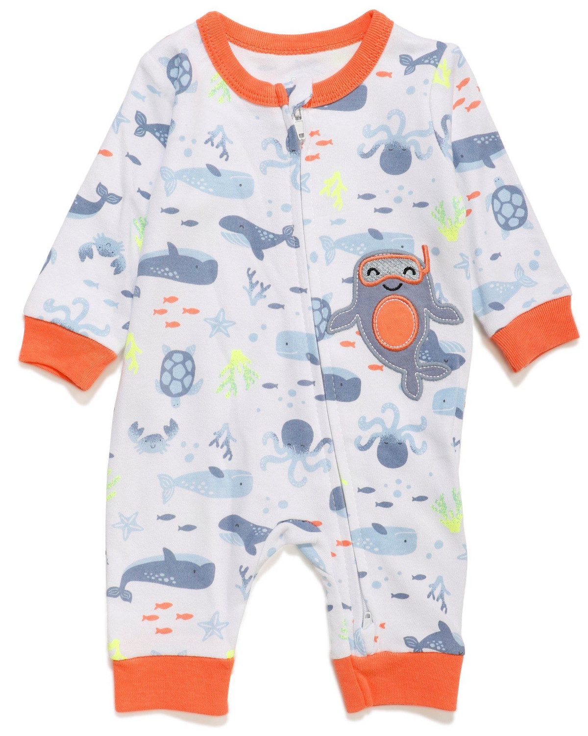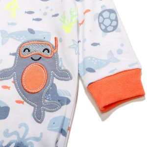 Dive into dreamland with this charming footless sleeper, featuring a whimsical underwater life pattern and an embroidered whale patch. Made from soft, breathable fabric for all-night comfort. The footless design gives growing feet room to move, and the 2-way zipper makes changes quick and easy. Cozy, cute, and ocean-inspiredperfect for your little explorer.