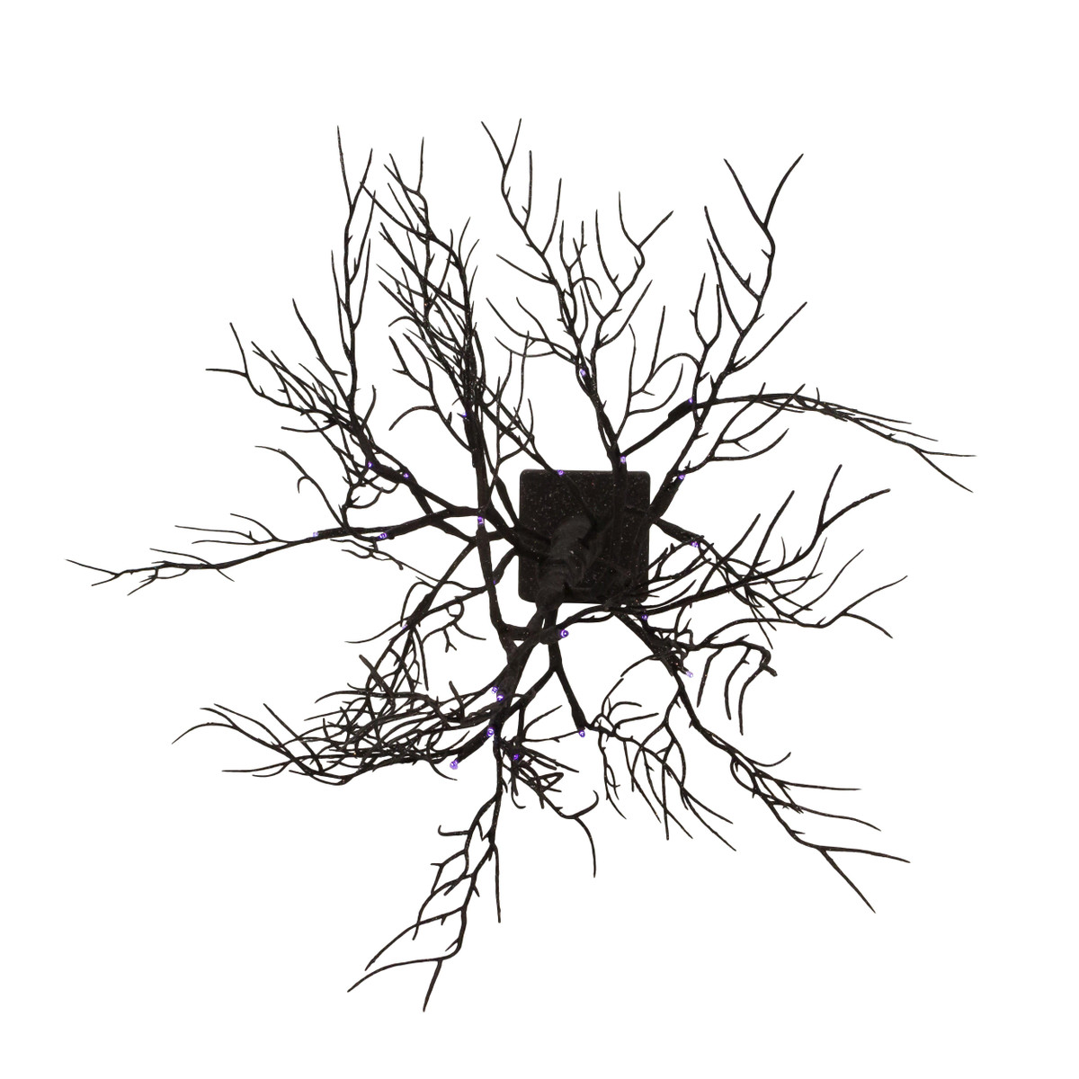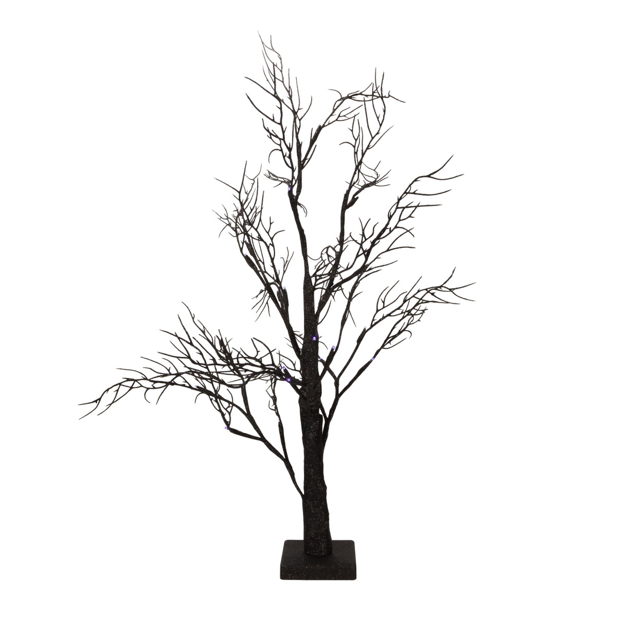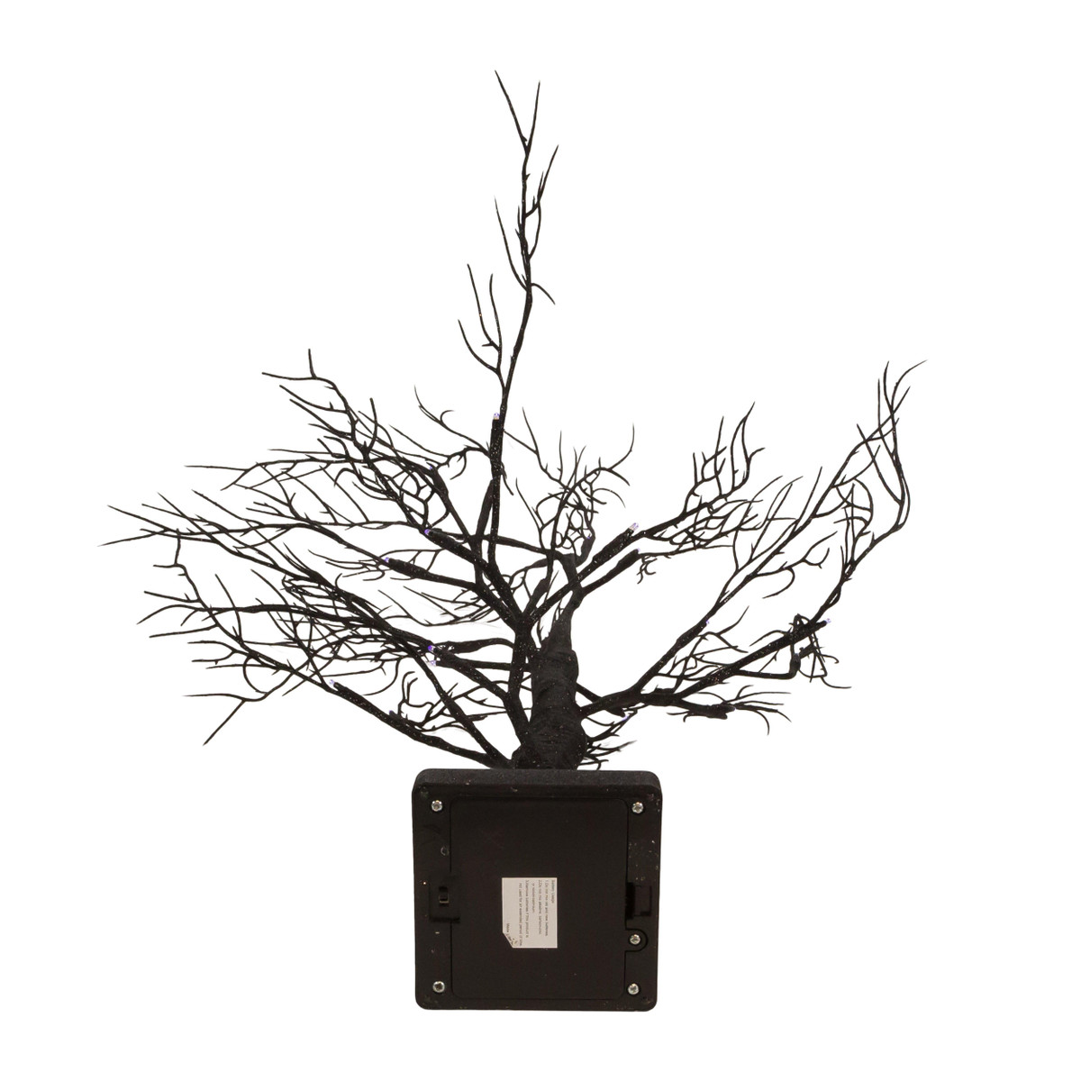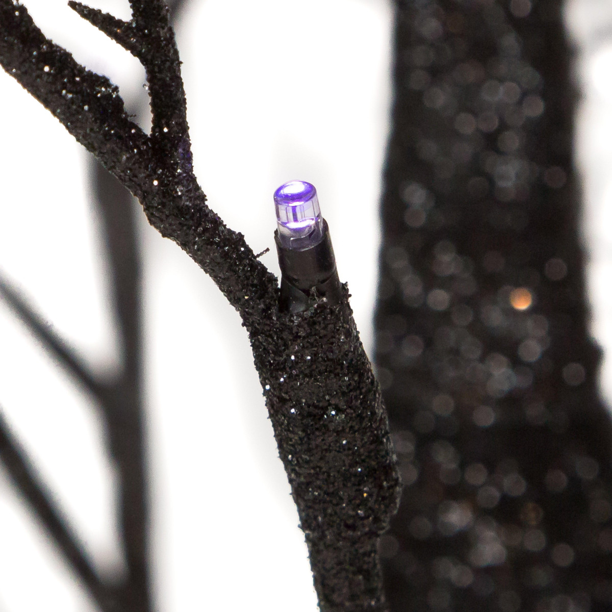 Kurt S. Adler’s 2 ft. Purple LED Black Glitter Tabletop Tree is the perfect addition to your Halloween décor. This tree features 24 orange LED lights with 6 branches. This uses a 3 AA battery box with an on/off function and batteries are not included. This unique piece is a must have! Measures 11.5 in. x 15 in. x 24 in.