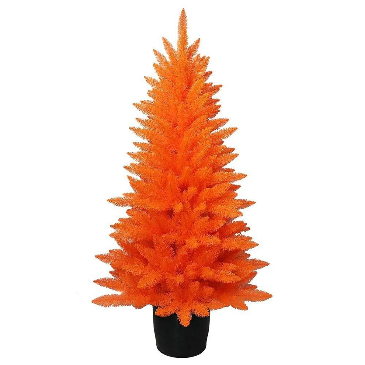 Brighten your Halloween décor with Kurt Adlers 4.5 ft. Orange Potted Tree. Featuring 116 vibrant tips and a sturdy potted base, this bold tree adds festive charm to any space. Its 28 diameter and all-orange design make it perfect for seasonal displays or year-round color. A versatile and eye-catching accent for your spooky setup. Measures 4.5 feet.