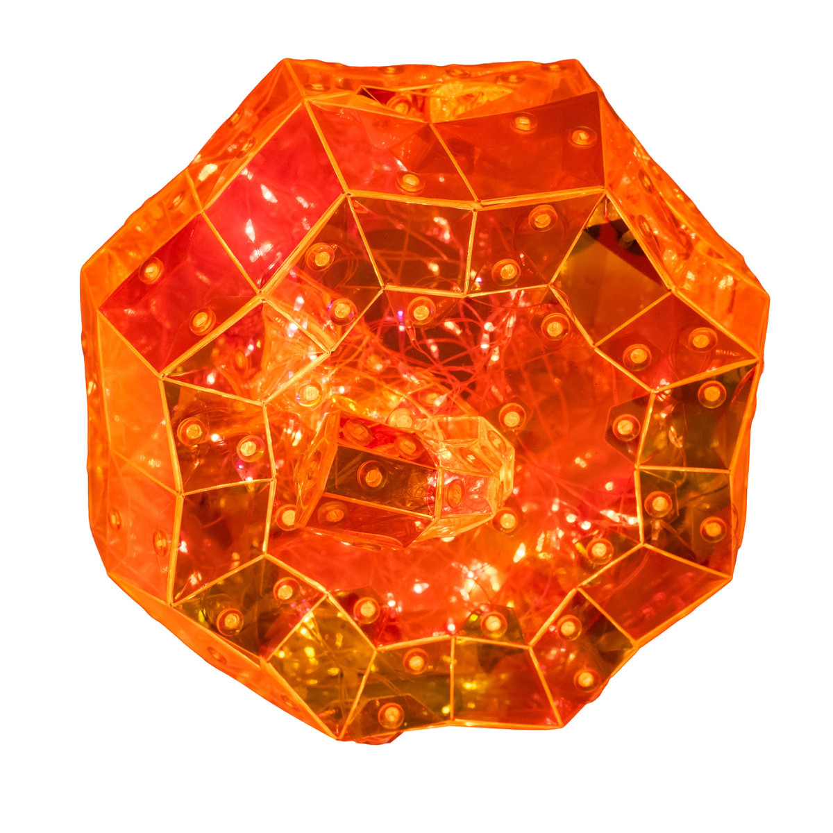 Introducing our 100-Light Orange Micro LED Holographic Jack-O-Lantern, a spooky and eye-catching Halloween decoration that will add a hauntingly fun atmosphere to your festivities. It features a classic Jack-O-Lantern design with a holographic twist. The energy-efficient LED lights emit a bright and eye-catching glow, making your Jack-O-Lantern stand out in the dark. Measures 7.5 in. x 7.5 in. x 6.5 in.