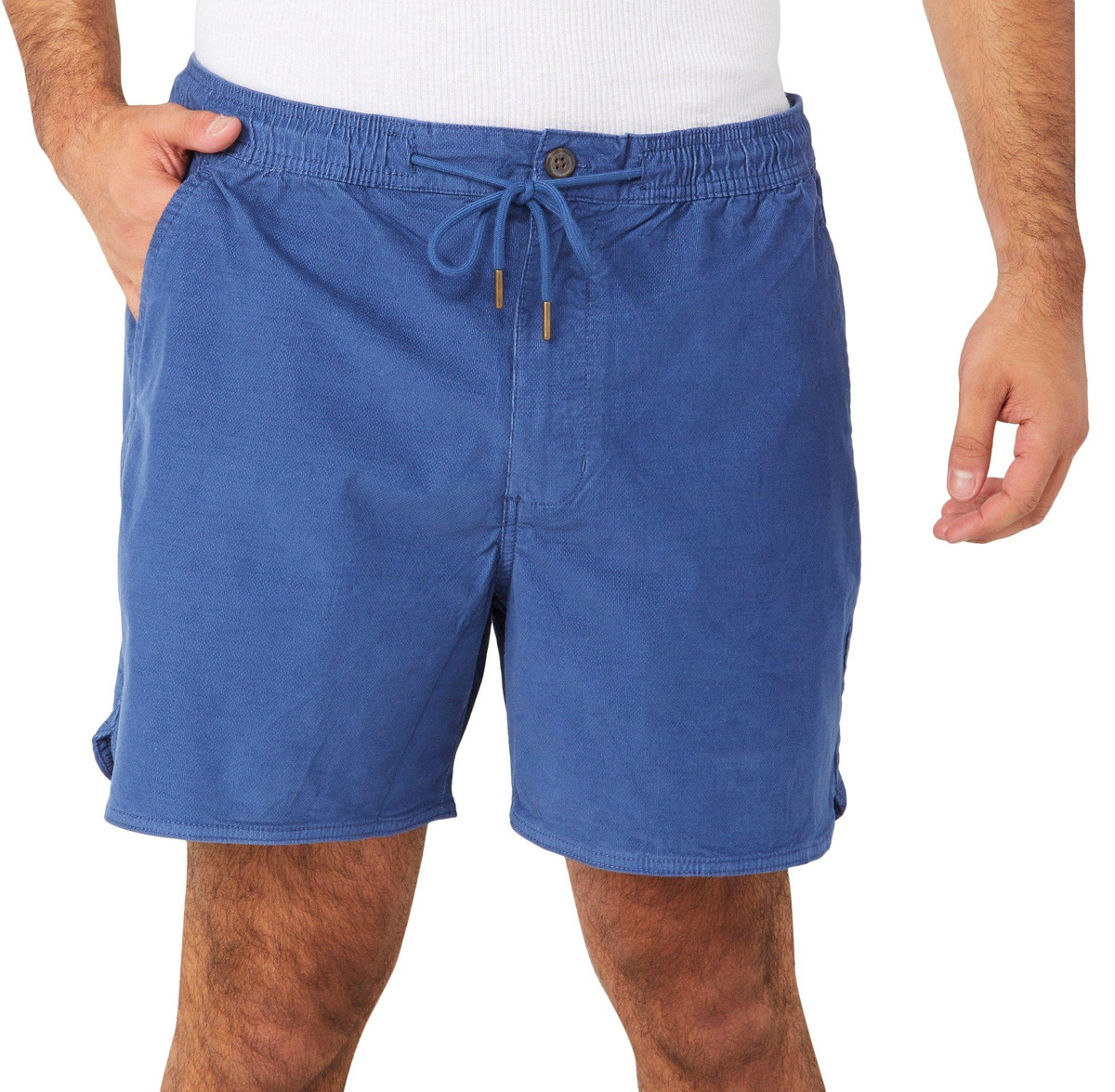 These 6 in Textured Cotton Shorts are made from a soft blend of cotton and spandex for comfort and flexibility. Featuring a solid color, drawstring waistband, side seam pockets and one back pocket, they offer a relaxed fit with a 6 inch inseam ideal for casual warm weather wear.