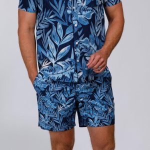 The Tailored Fern Print Swim Shorts are designed for both style and comfort. Made from a blend of 90% polyester and 10% spandex, these shorts offer a flexible, water-friendly fit. Featuring a drawstring waistband, side slip pockets, and one back pocket, theyre perfect for your next beach day or poolside relaxation.. 6 Inches inseam sits at the thigh. UPF 50+ 4-way stretch.
