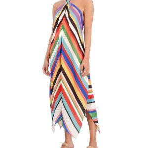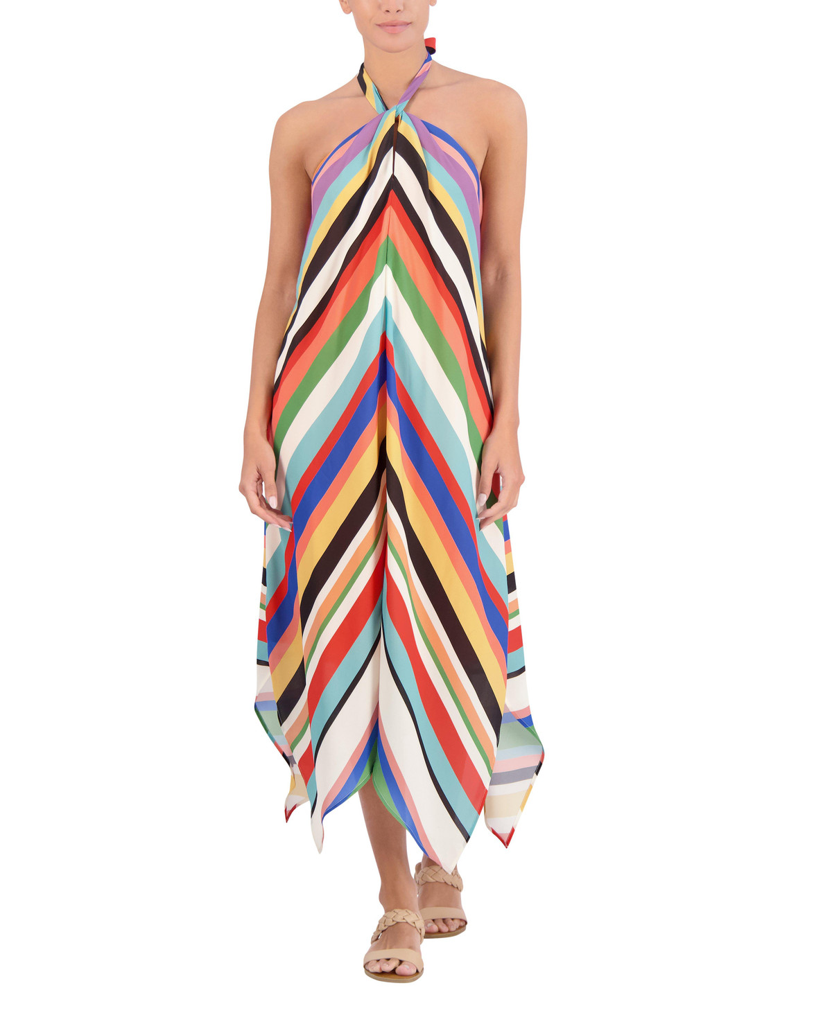 Bring the fun wherever you go in this Laundry by Shelli Segal halter dress! With bold stripes, a breezy handkerchief hem, and a flirty tie-back, it is your go-to for beach days, brunch dates, or dancing under the stars. Colorful, comfy, and totally vacation-ready! Dress length 52 in.