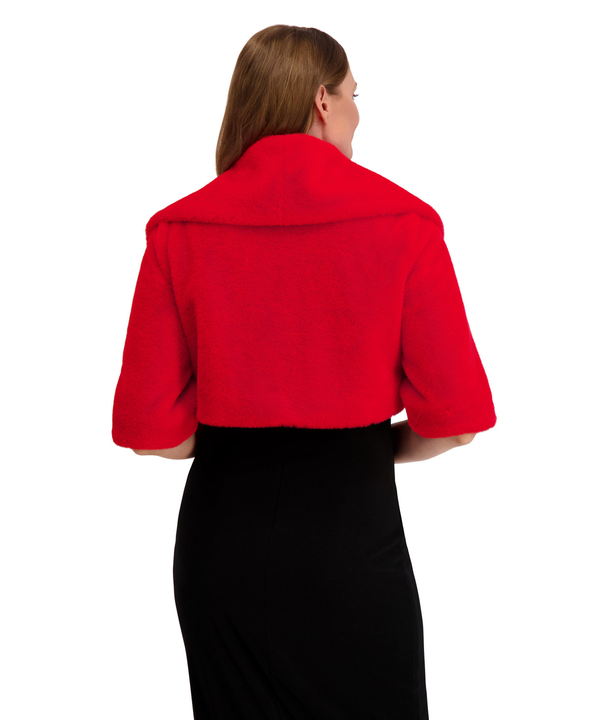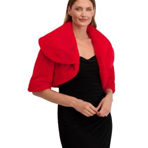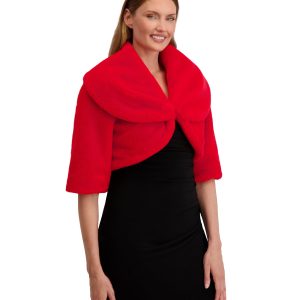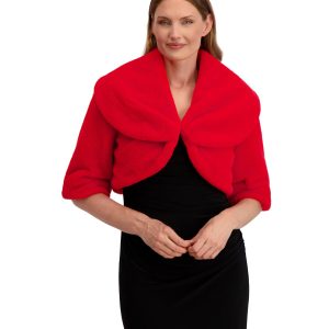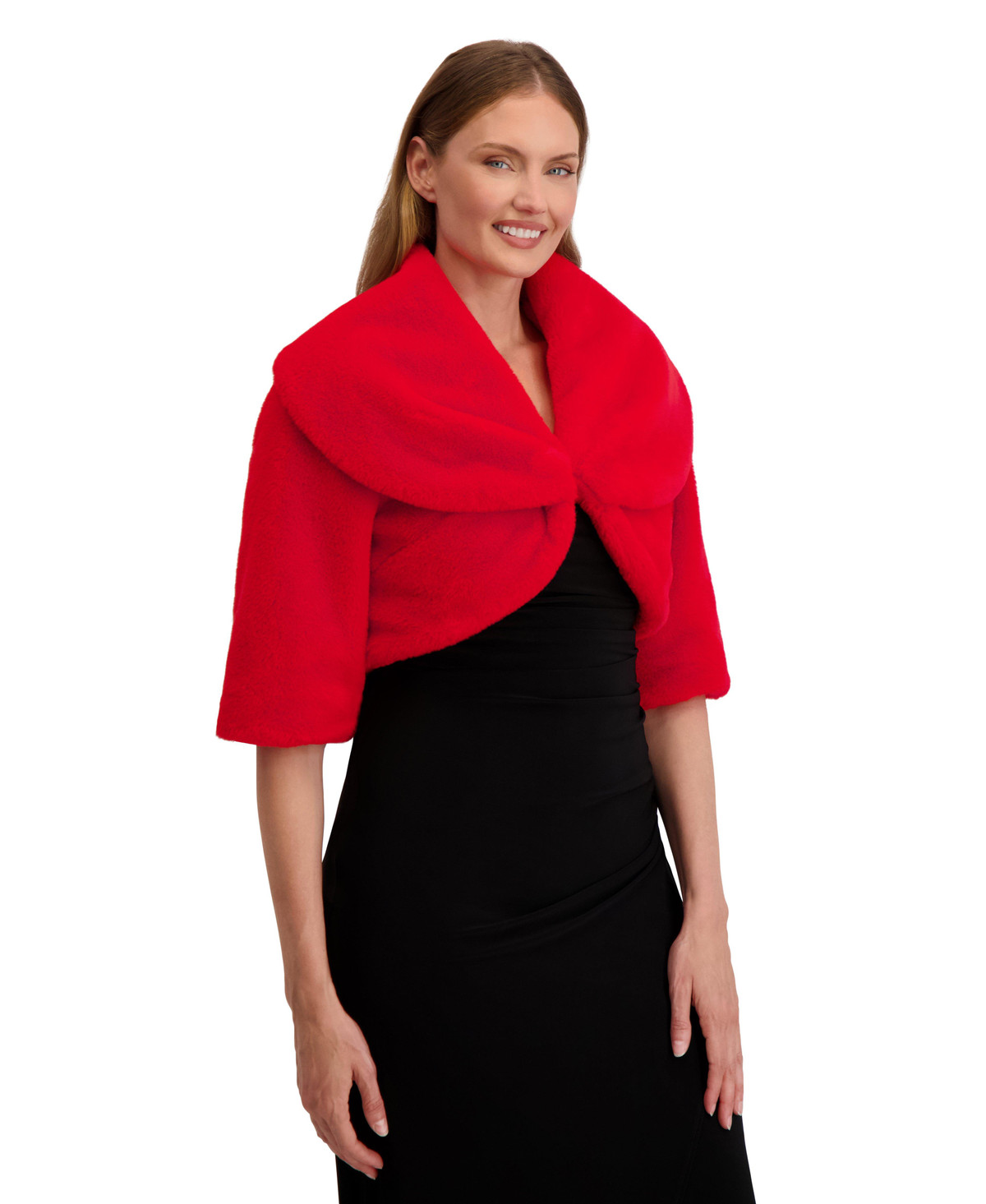 Elevate your cold-weather style with this ultra-soft faux fur shrug by Laundry by Shelli Segal. Featuring a wide collar, elbow-length sleeves, and a sleek hook-and-eye closure, its the perfect layer over your favorite slip dress. Chic, cozy, and effortlessly elegant. Shrug length measures 16 in.