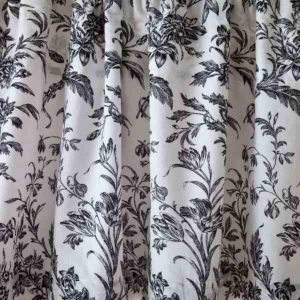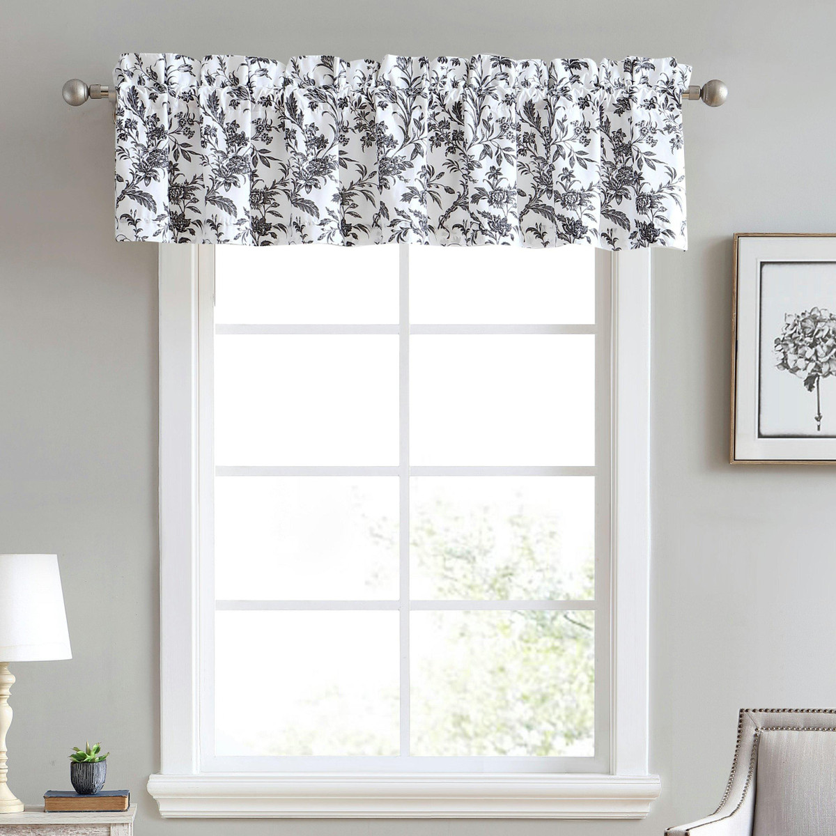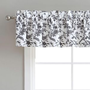 Floral toile designs have timeless appeal. The Laura Ashley Amberley is classic with a black and white floral print. This unlined window valance adds the finishing touch to any room. Made of 100% cotton. Machine washable for easy care. Measures 15 in. W x 86 in. L.