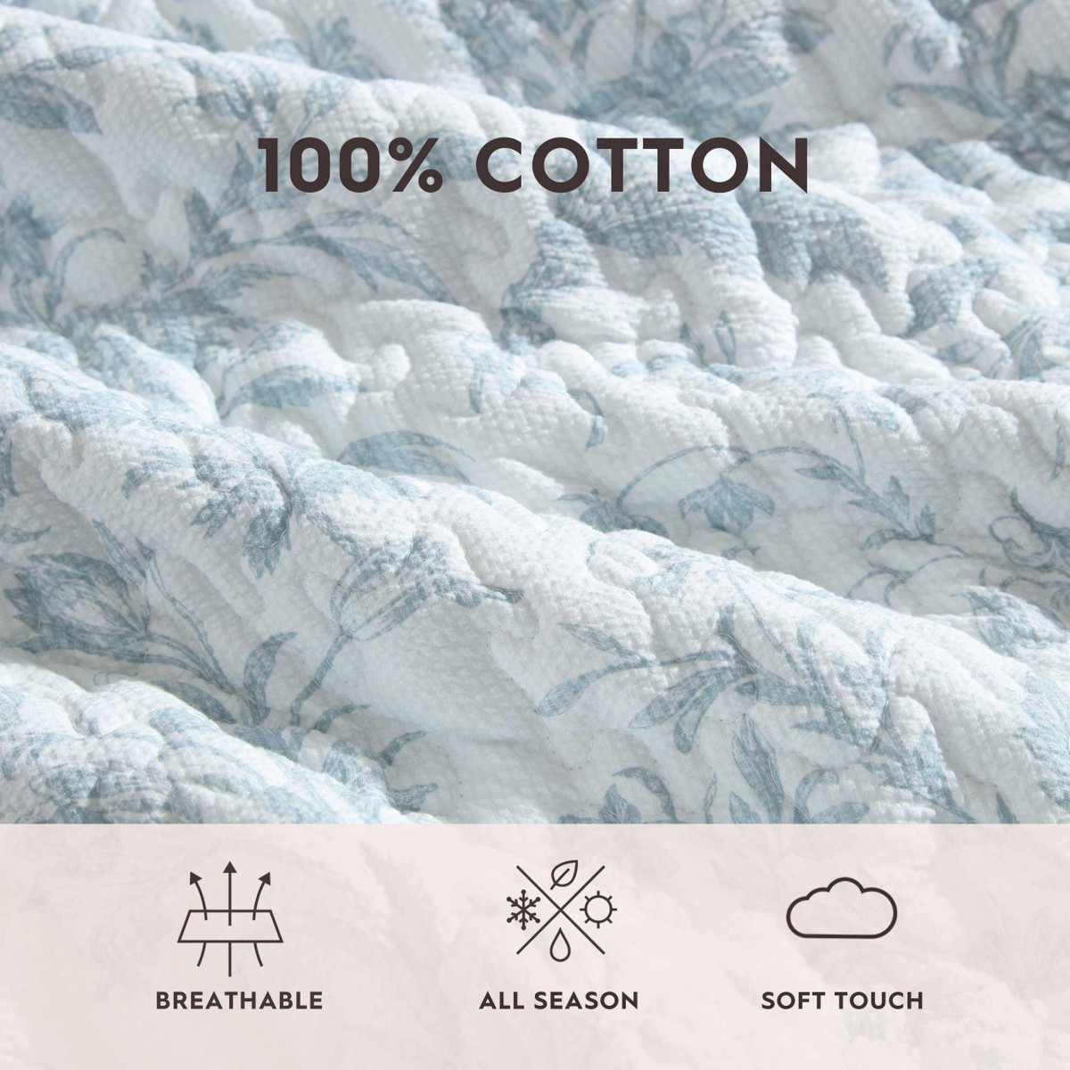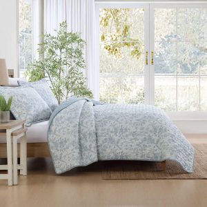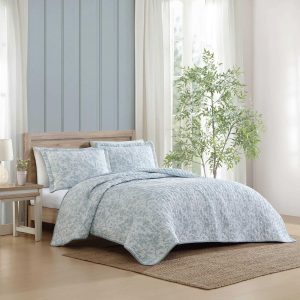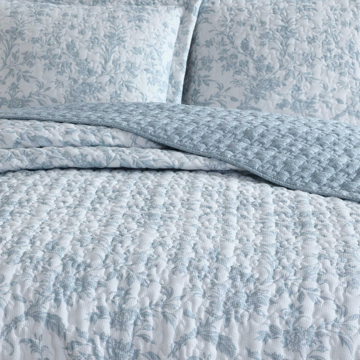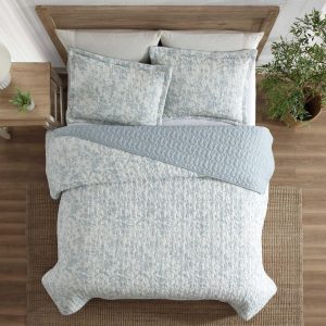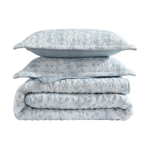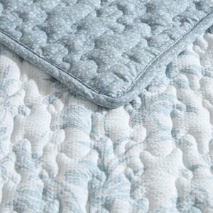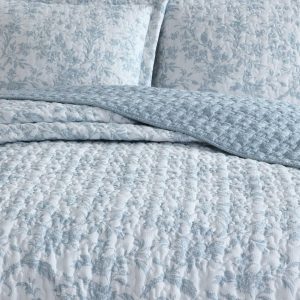The Laura Ashley Amberly seersucker quilt set features a sophisticated and charming soft blue pattern. The quilt’s front side is made of a textured seersucker fabric, while the reverse side is a smooth printed microfiber, providing a cozy and versatile option lightweight and ideal for use in all seasonsgreat for layering or as a standalone quilt. This set is both stylish and practical, offering the perfect blend of texture and softness for a comfortable night’s sleep. Machine washable.