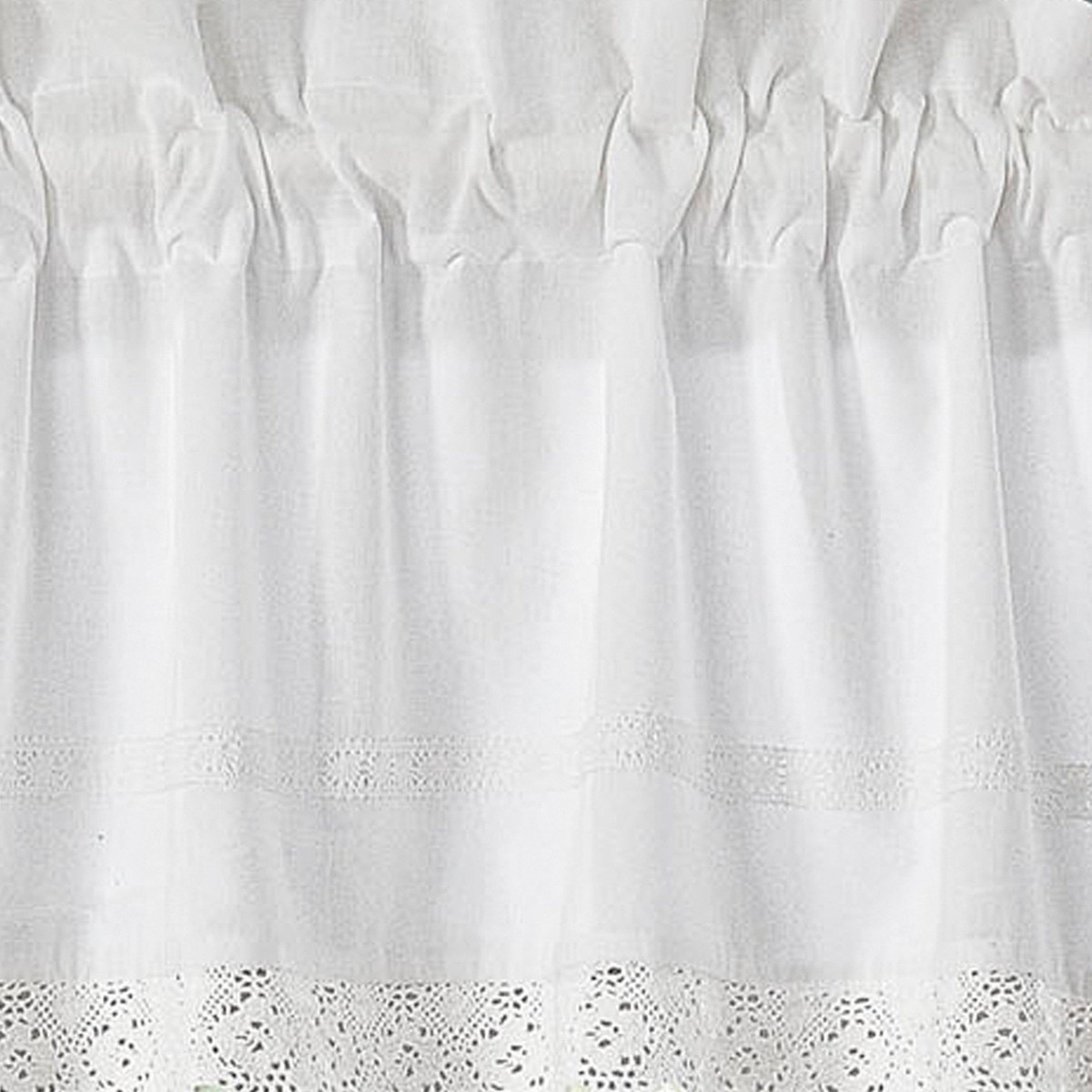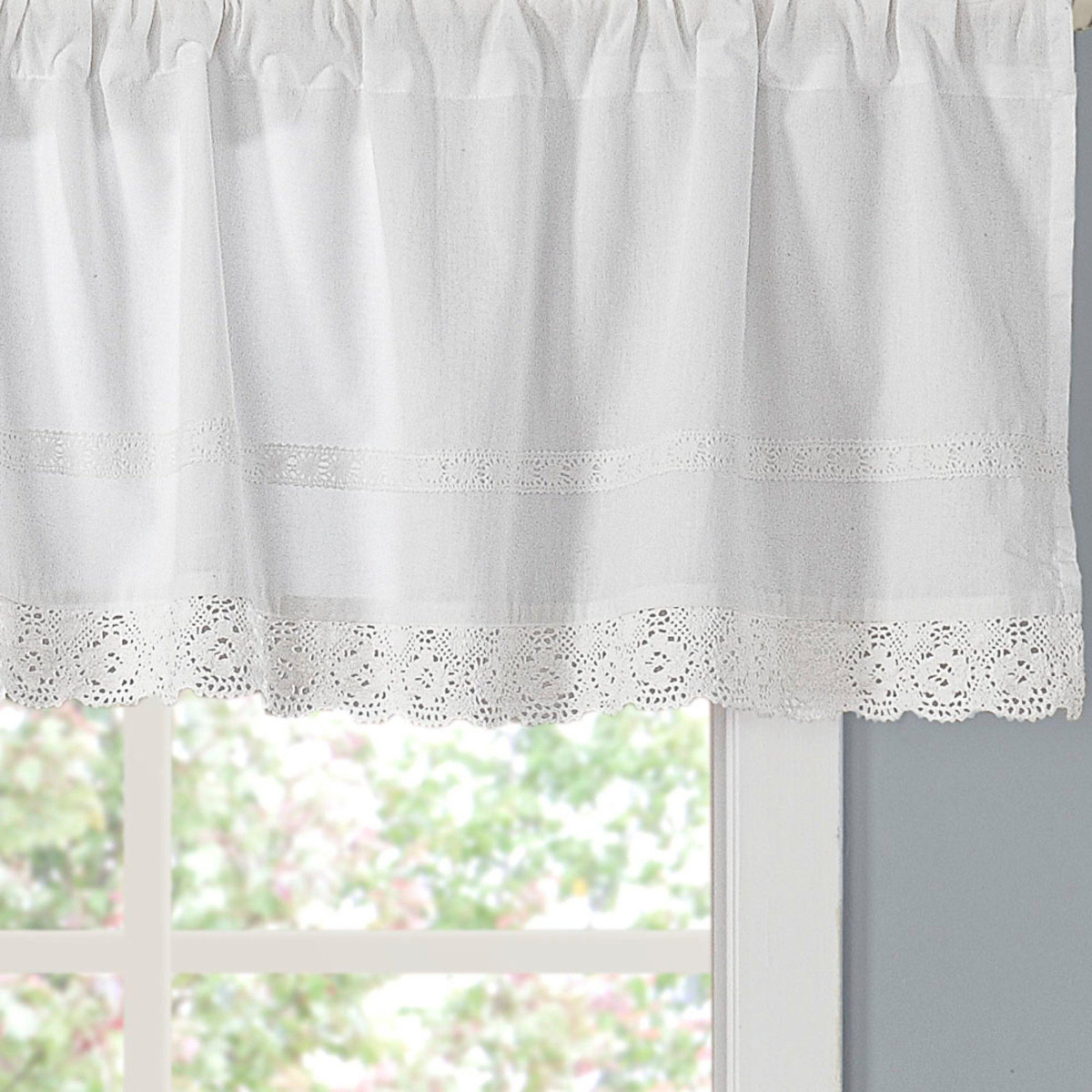 With a nod to the past, this white on white cotton ensemble trimmed with crocheted lace adds romance and modern femininity to your bedroom décor. Classic elements look fresh in this streamlined update and cool, crisp cotton adds welcome comfort. With Annabella, you can create an elegant, restful retreat you will enjoy coming home to. Unlined. Measures 15 in. W x 86 in. L.