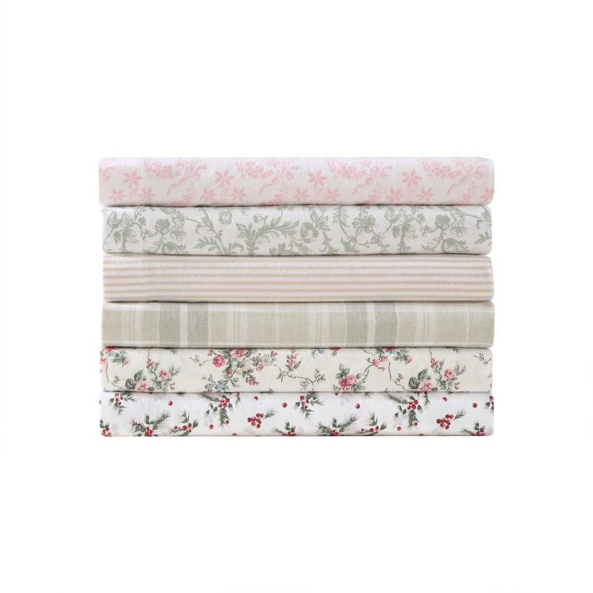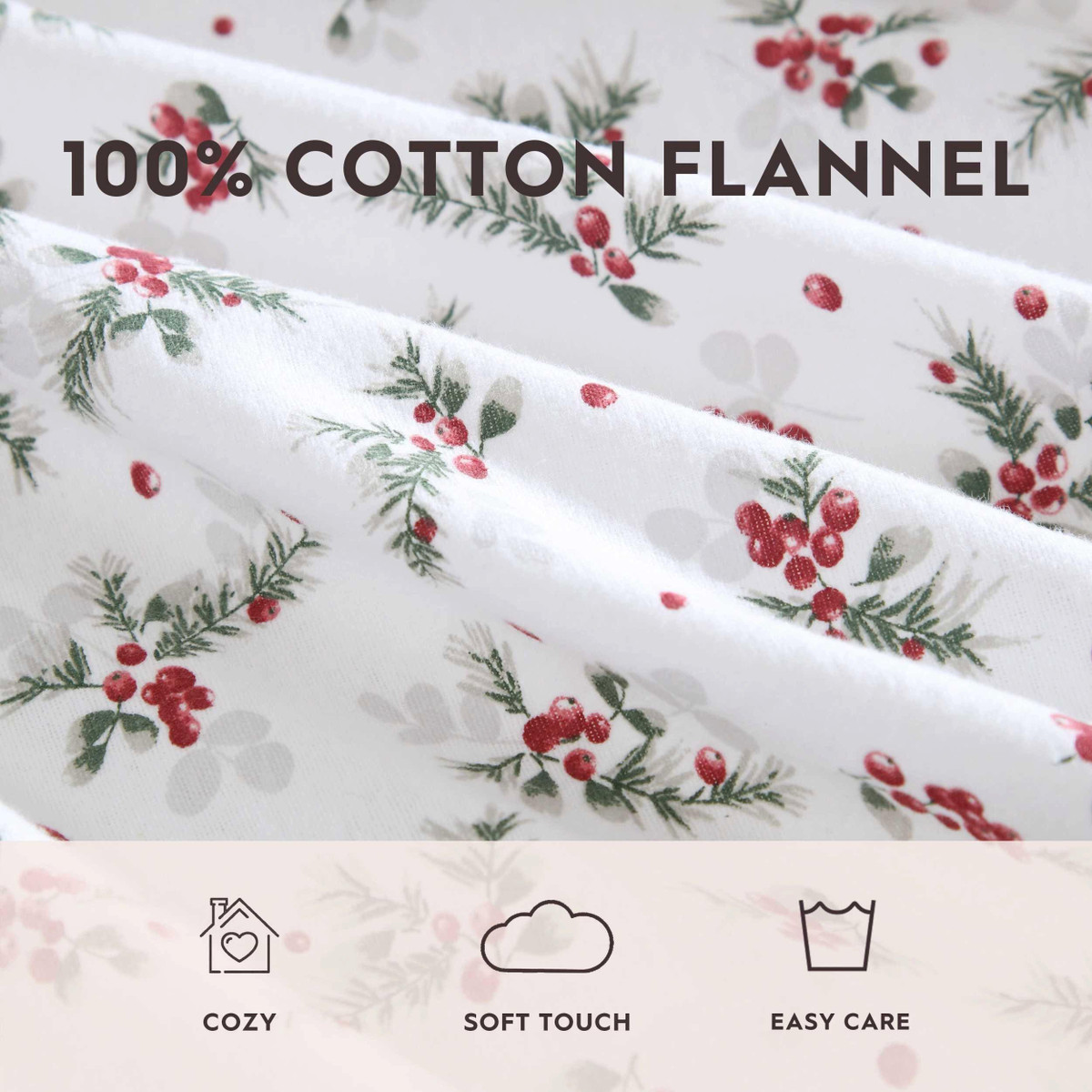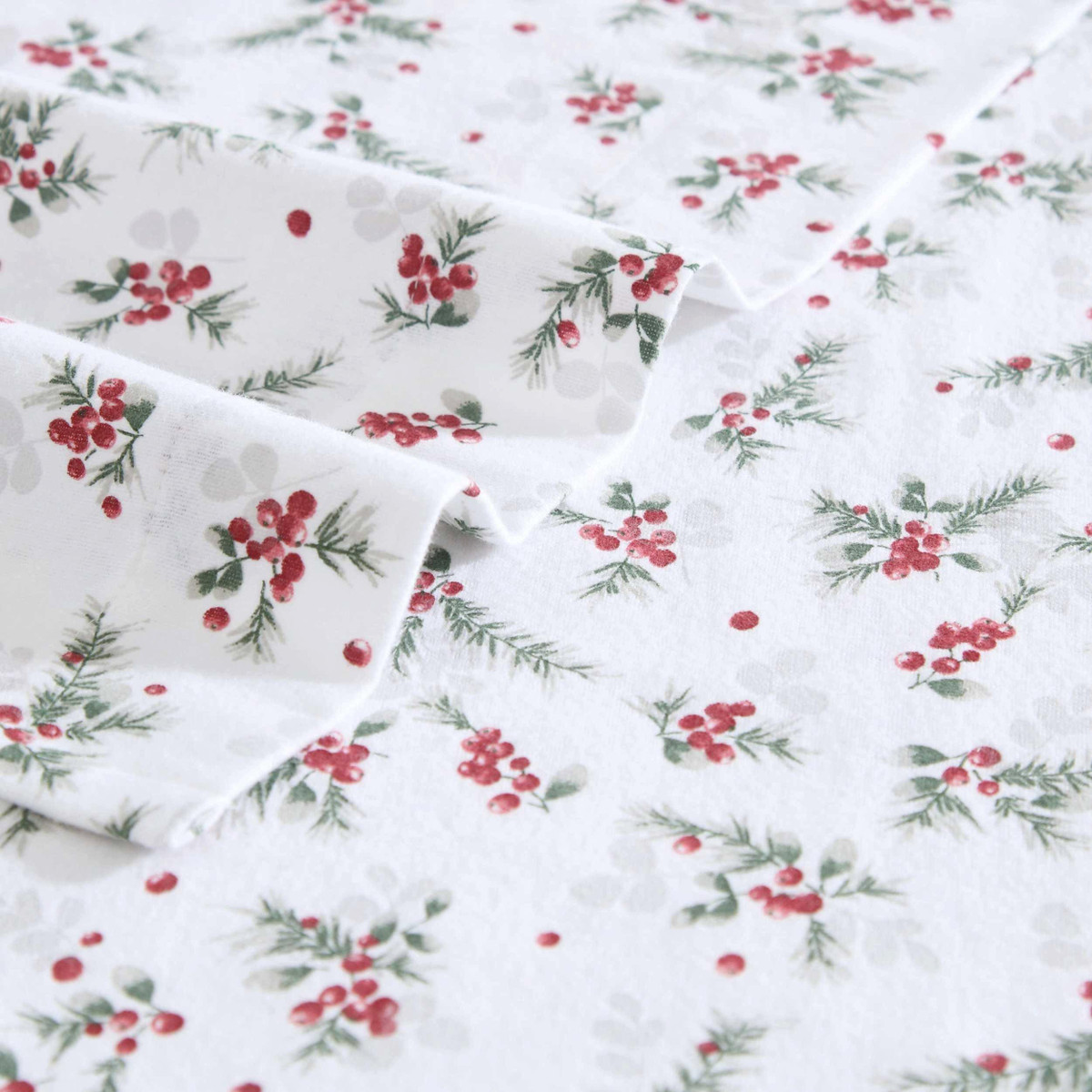 Bring a fresh look to your bed with the Laura Ashley Berry Bright Cotton Flannel Sheet Set. Crafted for ultimate comfort and warmth, they undergo an 8-level brushing process, ensuring a luxuriously soft and cozy feel. The fully elasticized fitted sheet features premium elastic for a secure fit, for mattresses up to 15 in. deep (12 in. twin size). Each machine-washable set includes one flat sheet, one fitted sheet, and two pillowcases, making it a perfect blend of style, quality, and convenience.