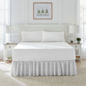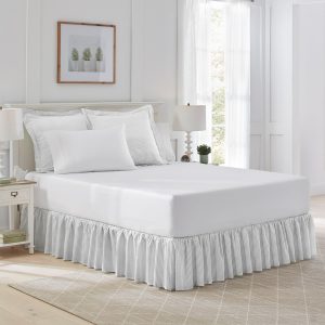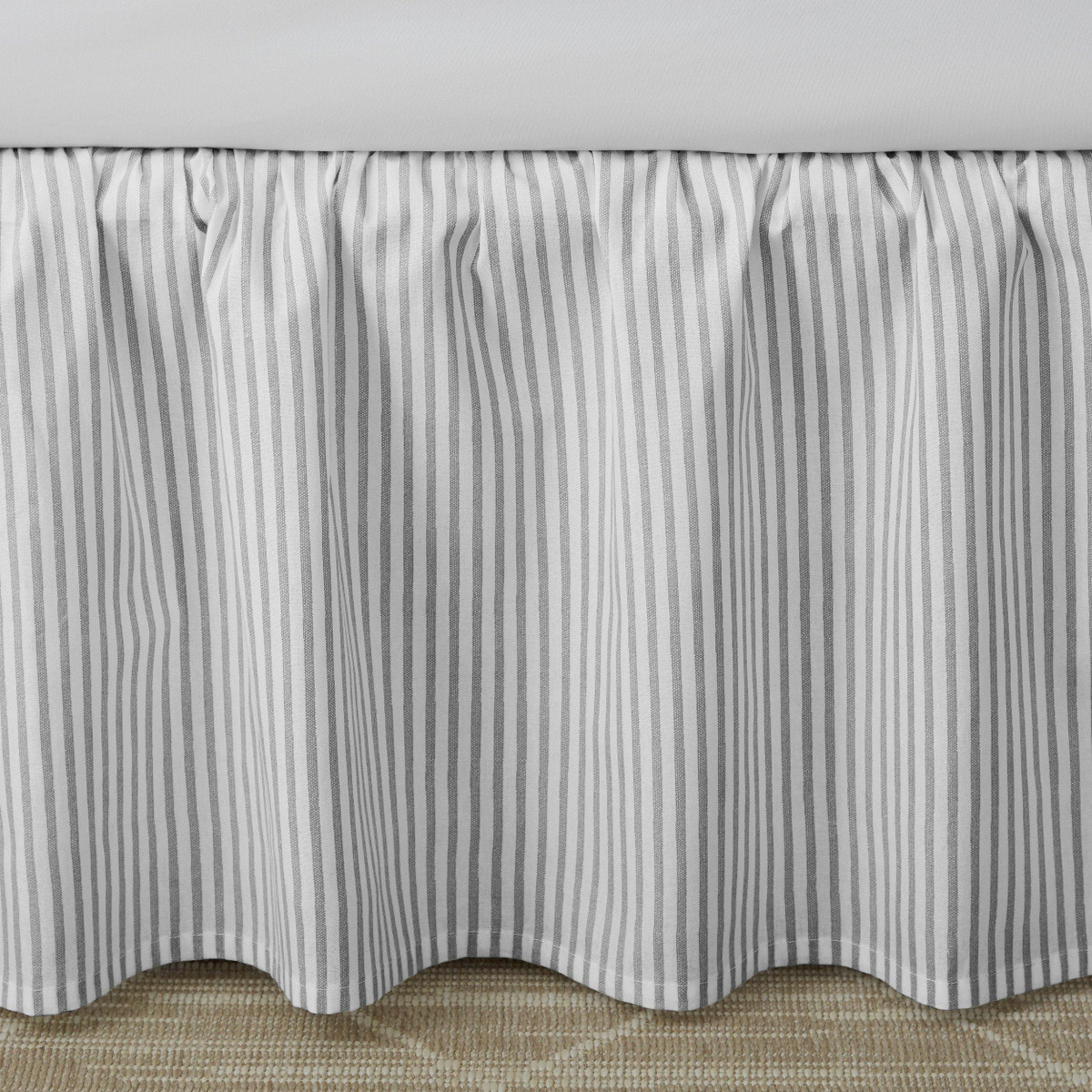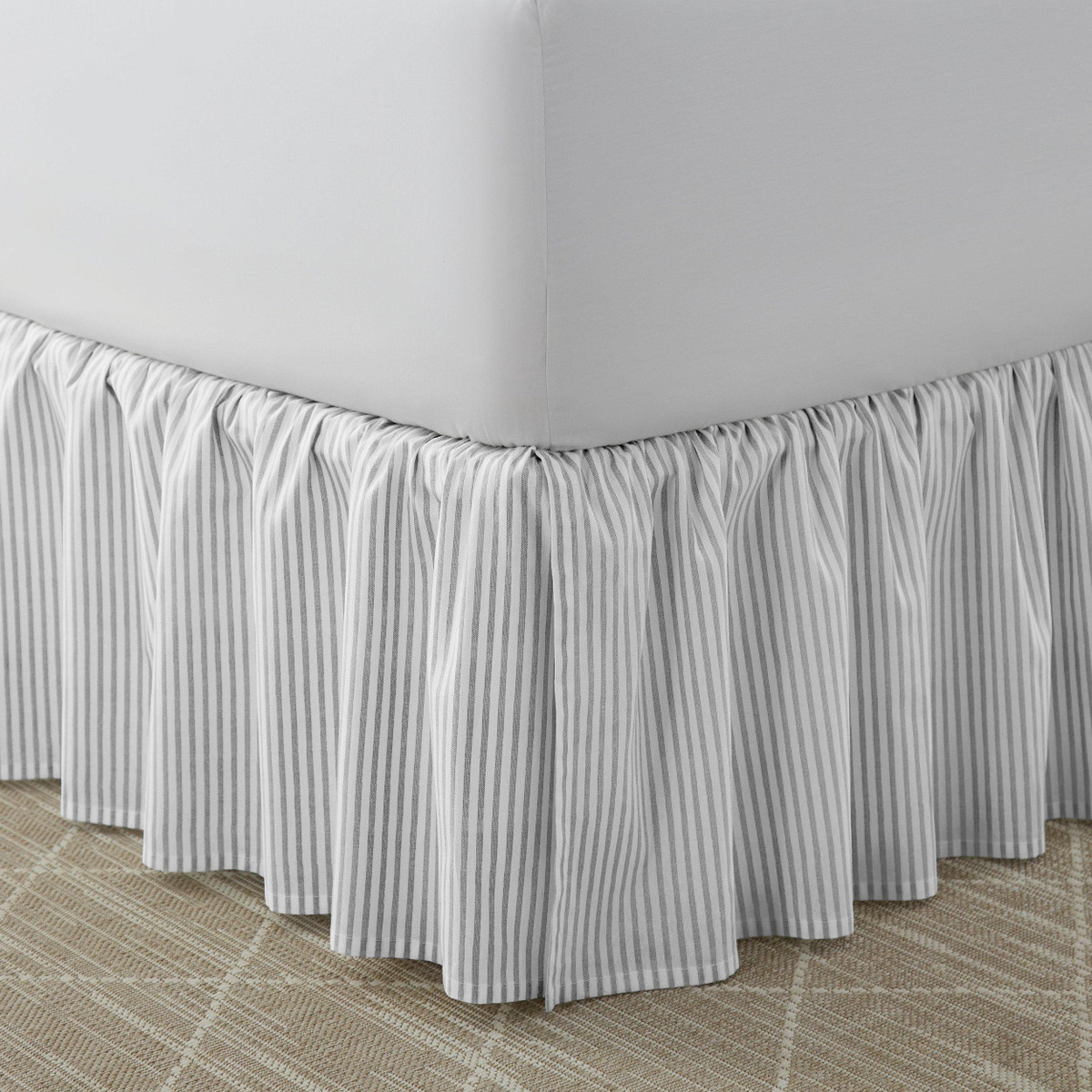 The Laura Ashley Classics Ruffled Bedskirt is printed with a light blue and white ticking stripe that coordinates with many Laura Ashley bedding collections. It adds an elegant touch to finish off your bedding ensemble. Fabrication 100% cotton.