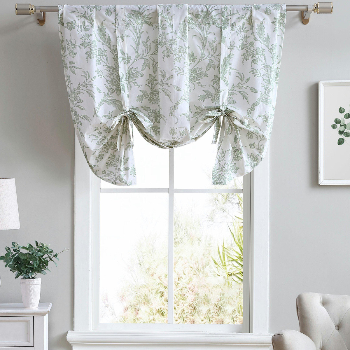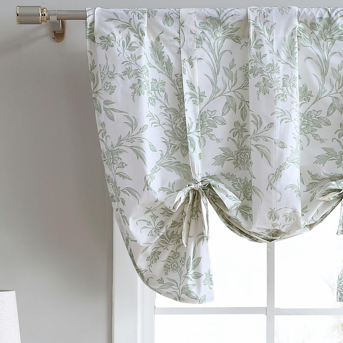 Update your home with new window treatment from Laura Ashley. The Natalie Window Valance features a warm floral toile design in soft green on ivory background. This valance has 2 pull up ties finished with bows, and a 4 in. rod pocket. Pole Top Valance: 25 in. x 50 in.