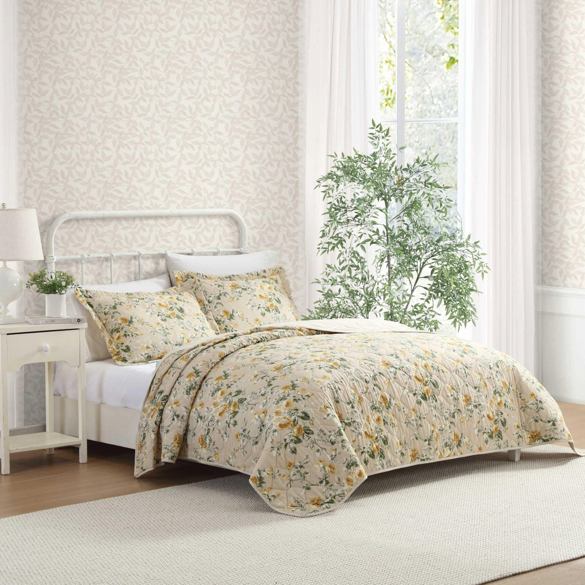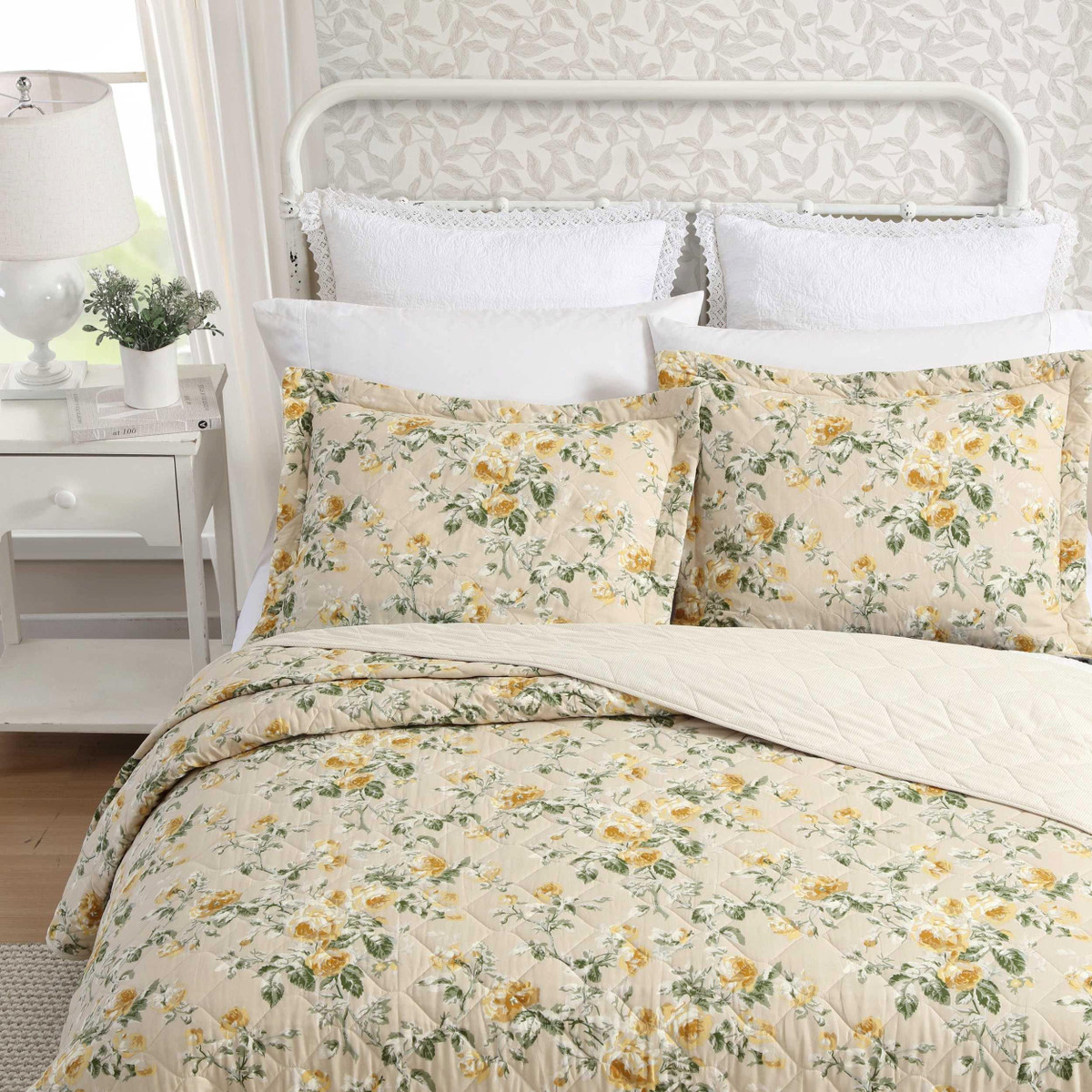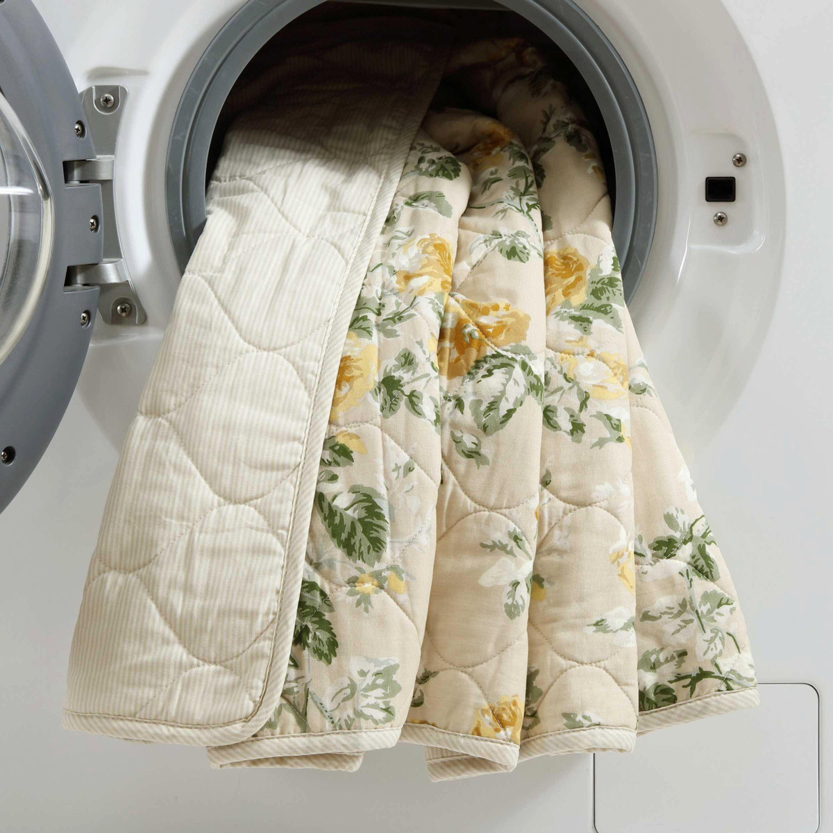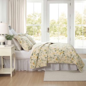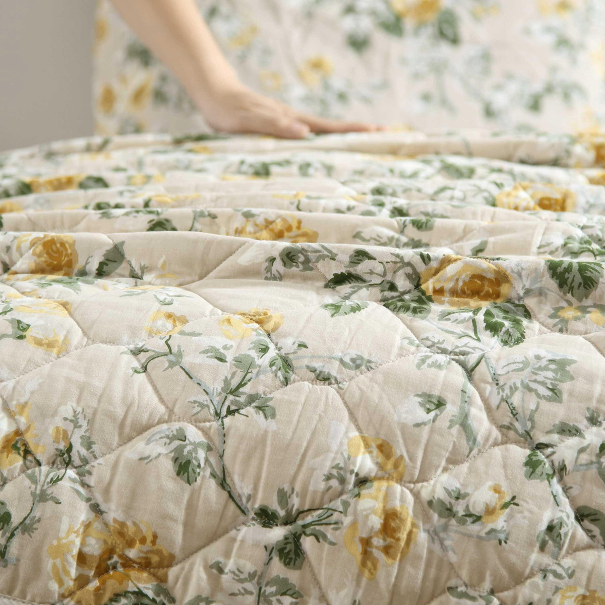 The Laura Ashley Roses Quilt Set in gold and beige provides a beautiful and timeless design that enhances any bedroom décor, making it a delightful and practical addition to your home. Designed to add elegance and warmth to your bedroom, it is made from 100% cotton, is lightweight yet warm, making it ideal for year-round use and perfect for layering. The quilt has been pre-washed for extra softness, ensuring a cozy and comfortable sleep. Machine washable for easy care and maintenance.