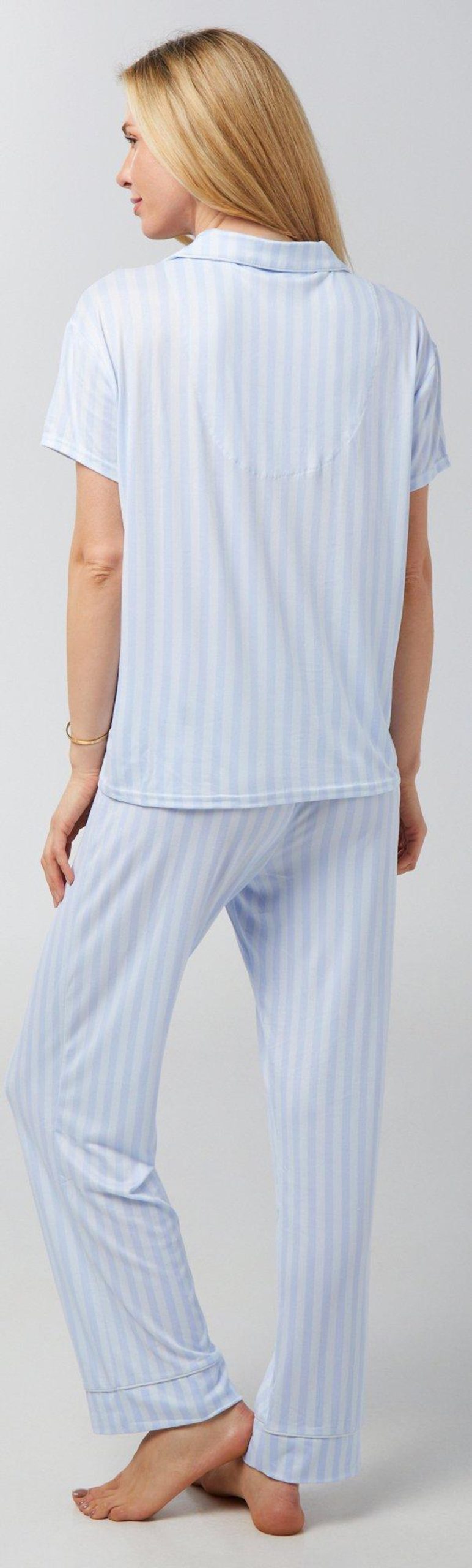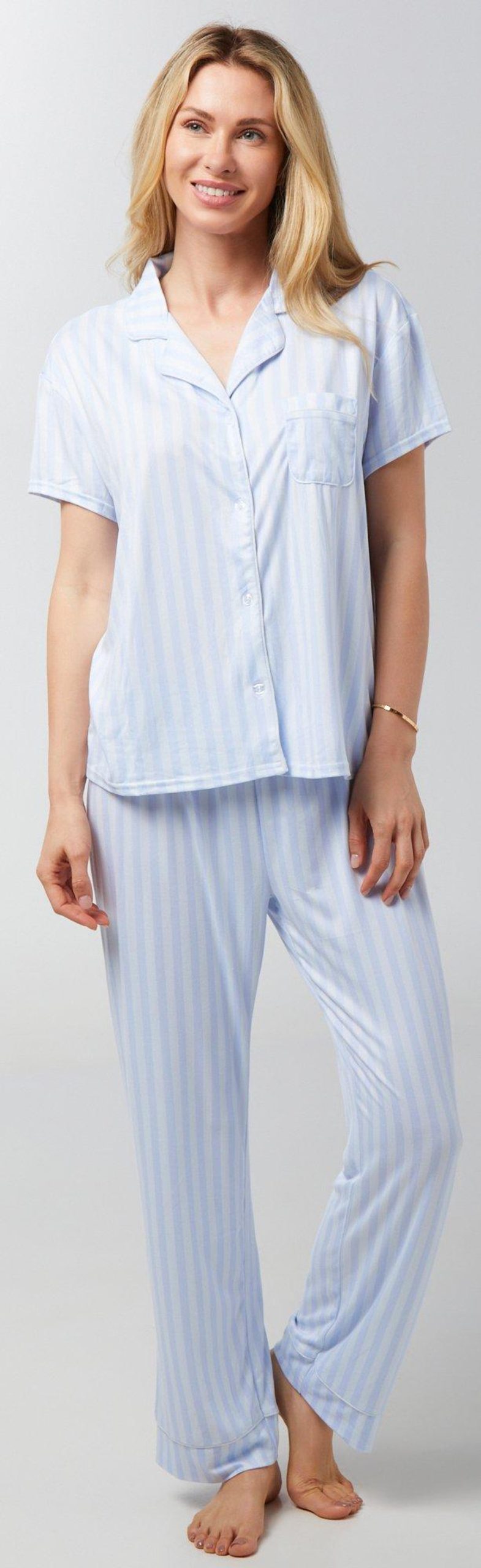 Introducing the Women’s 2 Pc Notch Collar Pants Sleepwear Set, crafted from a comfortable blend of polyester and spandex. This elegant set features a vibrant design, adding a touch of charm to your nighttime routine. The short sleeve top pairs seamlessly with the matching pants, offering both style and ease. Perfect for lounging or sleeping, this set combines beauty and comfort, making it a delightful addition to your sleepwear collection.