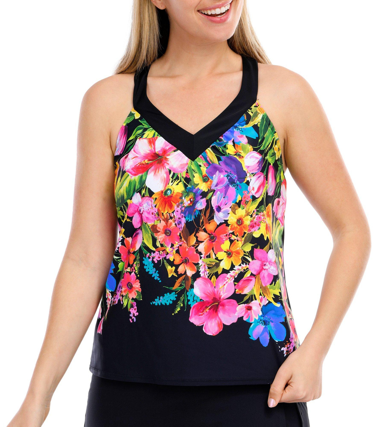 The Leilani swimwear line features fun cuts, fresh patterns, and fashionable styles with a tropical influence. This swim skortini features a solid color design on matte jersey fabric, attached boy short briefs, and a front side slit. Fabrication nylon, spandex.