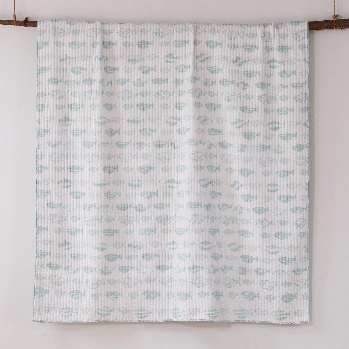 Refresh your space with the Aqua Breeze Reversible Quilt and Sham Set by Levtex Home. Inspired by classic Scandinavian style with a coastal twist, it features aqua and white fish in a pattern-on-pattern design, reversing to crisp aqua and white stripes. Made from the softest lightweight cotton and machine washable, this set brings ocean-inspired comfort and charm to your bedroom for years to come.
