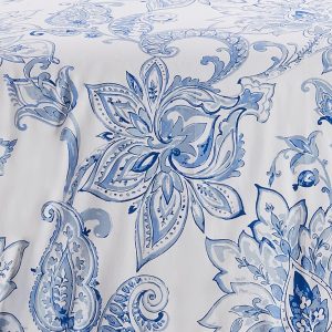 The Benette Comforter Set by Levtex Home is subtle sophisticated. Offered in blue and white, this design will immediately transform your bedroom. Made with a soft, luxurious cotton, this comforter set features a intricate paisley watercolor floral. It has a blue and white on the front and a mini blue medallions on white on the reverse. It is filled with a hypoallergenic 100% polyester filler. The Benette Comforter Set is machine washable.
