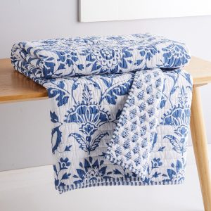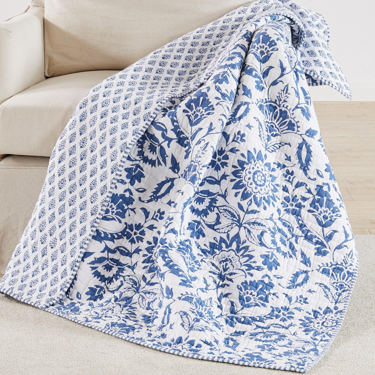 Add a touch of antique charm with the Clara Blue Reversible Throw by Levtex Home. Featuring elegant blue flowers and vines on one side and delicate blue medallions on white on the other, this throw brings timeless beauty to any space. Made from soft cotton with a cotton-rich fill, its lightweight, cozy, and machine washable for everyday ease. Measures 50 in. x 60 in.