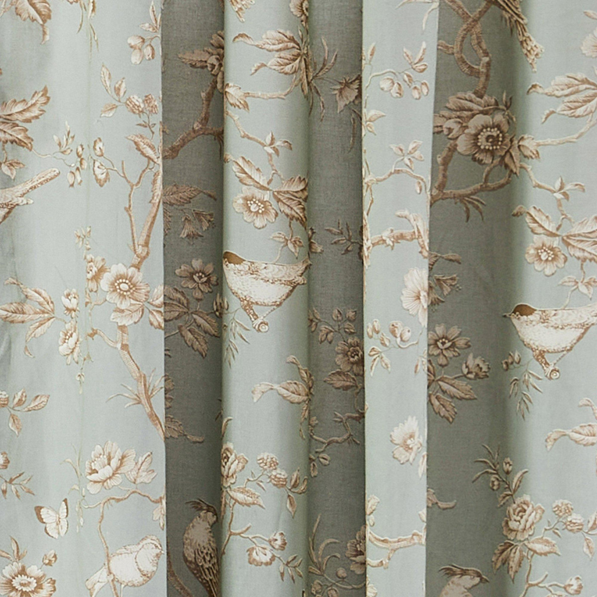 The Lyon Teal curtain panels are the perfect accessory for any window in your home. They particularly complement the Levtex Home Lyon Teal bedding collection. Each drape panel is sized at 55x84in. and features a traditional floral toile pattern on a teal ground. The sophisticated color palette makes this a versatile accessory for any room in your home. Each panel is lined with a light polyester liner and come with a rod pocket ready for installation.