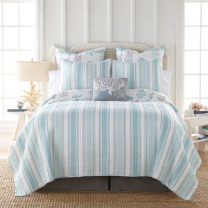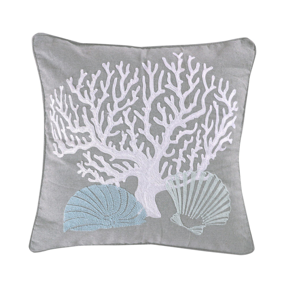 Add a coastal touch to your space with the Embroidered Coral Print decorative pillow. Featuring intricate coral embroidery on a soft grey canvas, it complements the Levtex Home Cape Coral collection perfectly. Its soothing palette and feather-filled comfort make it ideal for your bed, sofa, or favorite chair. Measures 20 in. x 20 in. x 3 in.