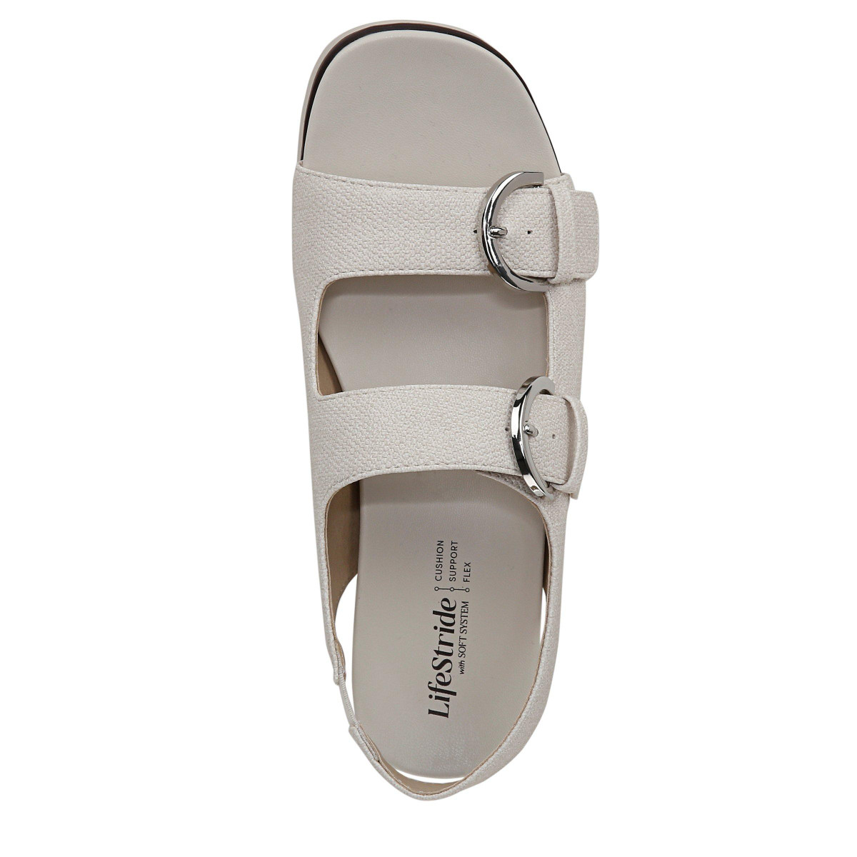 Walk in style and comfort with the lightweight Goodie Buckle Sandals. They feature a comfortable, modern double-strap design of faux leather, with a soft square open toe, heel strap with stretch gore for added flexibility, double strap with Velcro for easy on/off, linings crafted from partially recycled materials, Trusted Soft System® comfort technology for unmatched cushion, support, and flexibility, and traction soles for extra stability. Just Right Height 1 in. platform heel.
