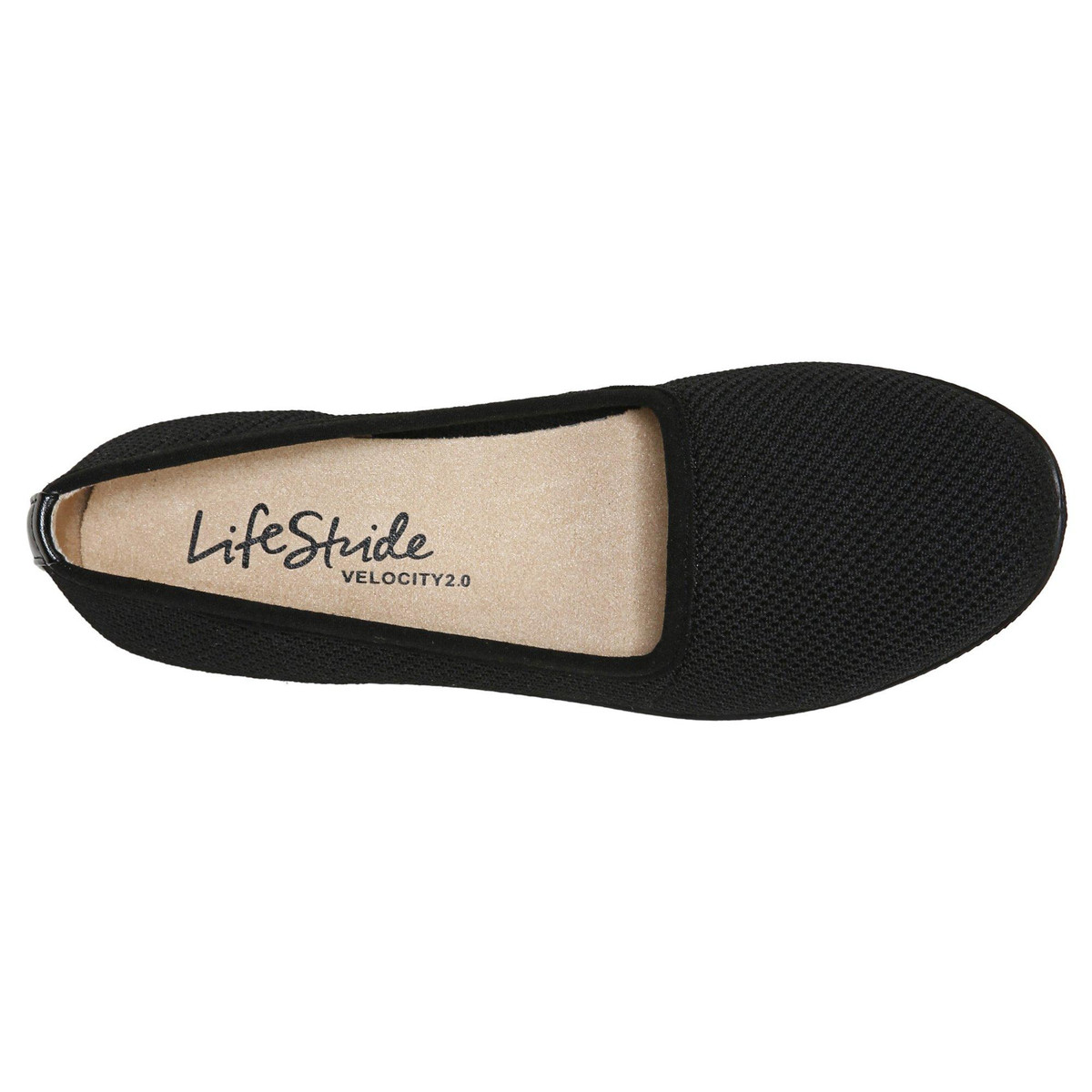 Comfort doesn’t come easier than in this stretchy women’s wedge. Stretch fabric upper in a casual slip-on style with a round toe. Slip on entry. Texture finish. Breathable synthetic lining. Velocity Memory Foam® footbed. 1.75-inch wedge heel. Flexible outsole with durable traction tread.