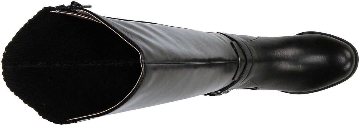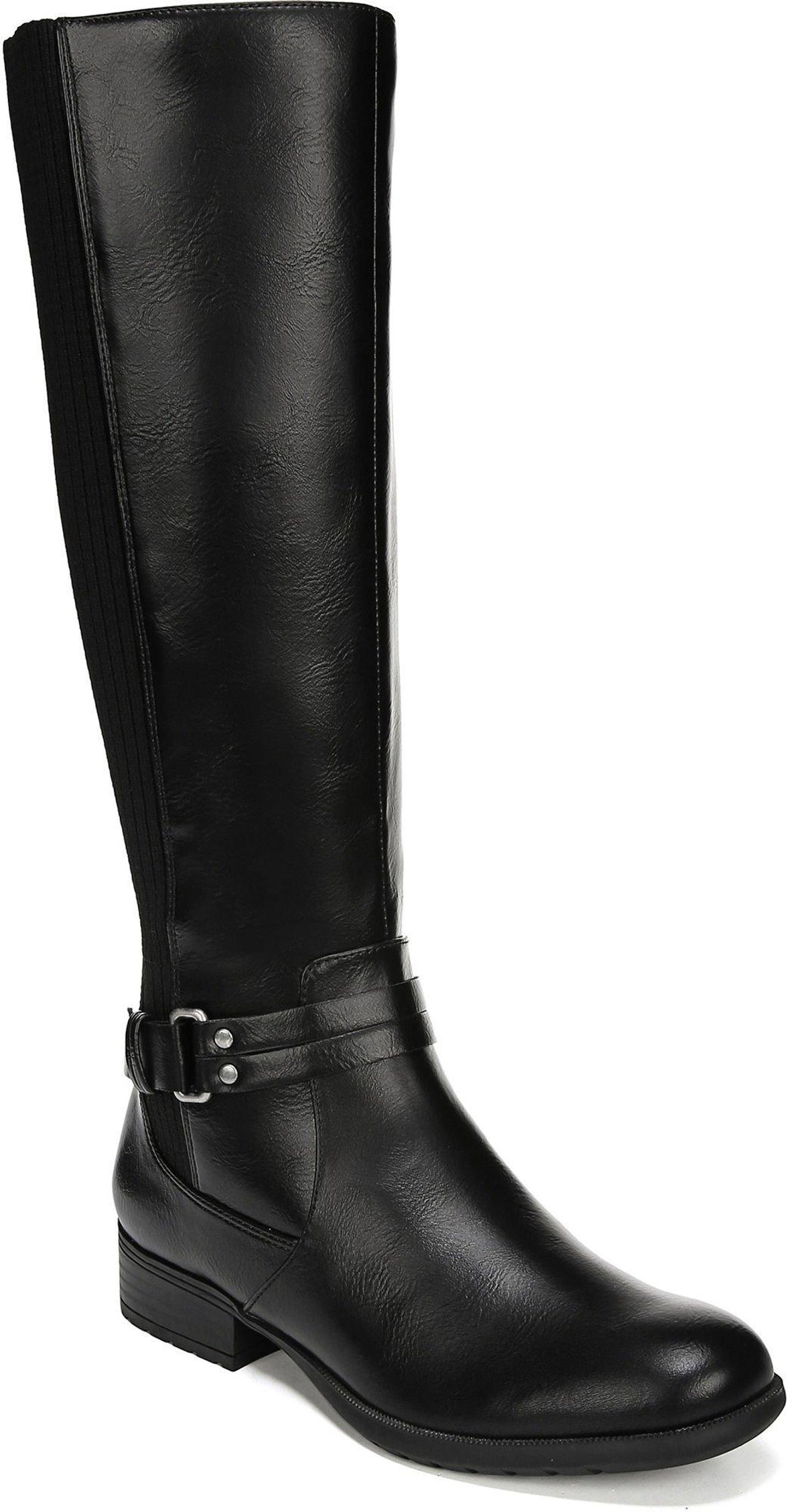 Cozy meets contemporary in the super comfortable, super stylish X-Anita riding boot from LifeStride. Faux leather upper with a round toe, side zip closure, stretch knit back panel, and decorative straps with metallic ornamentation. Soft System® comfort package provides all-day support, flex, and cushioning. Circumference: 15in Shaft Length 15 in