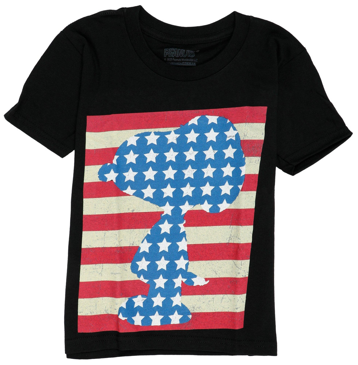 Keep it cool and patriotic with this Little Boys Americana Snoopy Tee! Made from 100% cotton, it features a comfy crew neckline, short sleeves, and a fun Snoopy graphic with red, white, and blue flair.