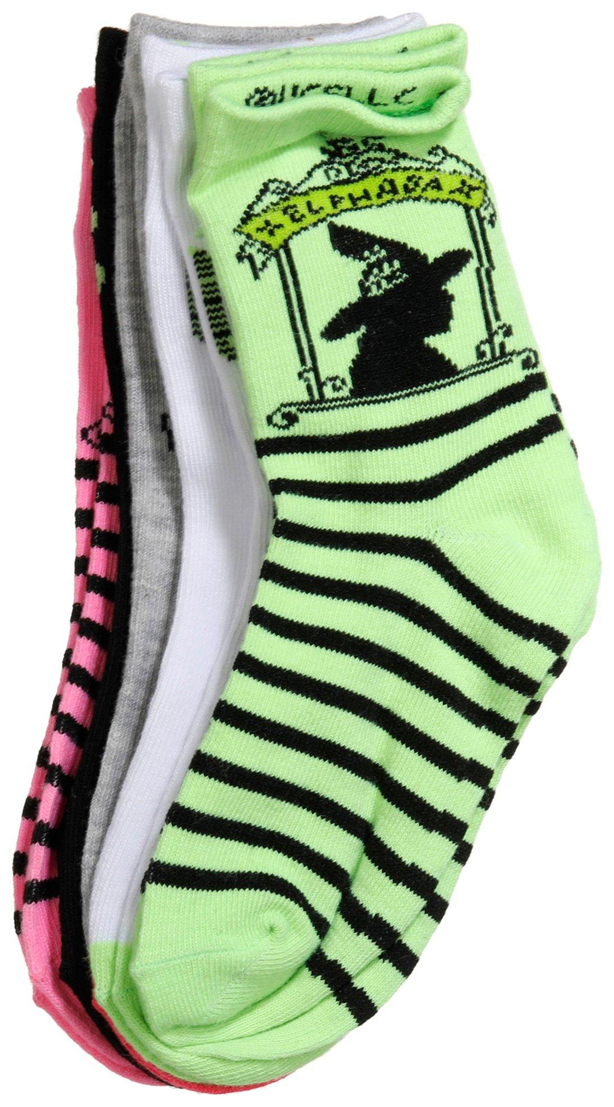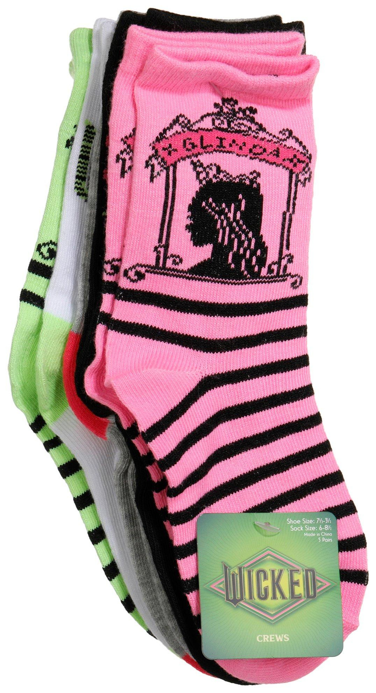 Step into style with the Little Girls 5 Pk Wicked Crew Socks. Crafted from a comfortable blend of polyester and spandex, these socks feature five assorted Wicked-themed prints that add a fun and magical touch to any outfit. Designed to fit shoe sizes 7.5-3.5, they offer a perfect fit for little feet. Ideal for everyday wear, these crew socks combine comfort, durability, and whimsical charm.