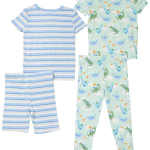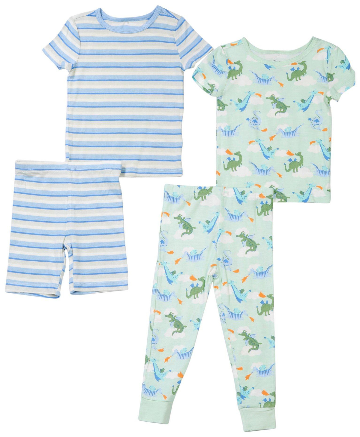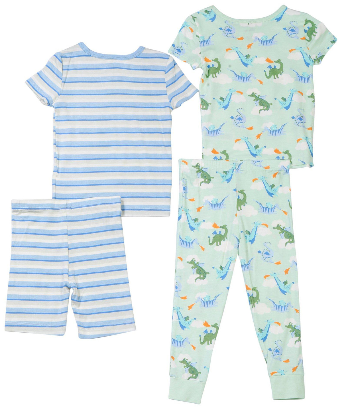Dress him in cozy comfort with the Toddler Boys 4 Pc Dragon Stripe Pajama Set. Featuring one striped set with coordinating short sleeve shirt and shorts, plus dragon print set with short sleeve shirt and matching pants, this collection blends playful design with soft fabric for restful sleep. Designed for easy layering and overnight comfort. Machine wash cold for easy care.